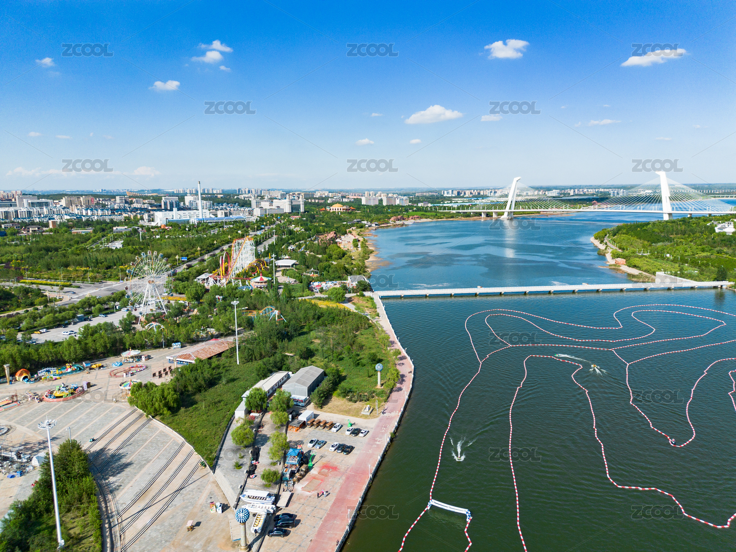 辽宁,营口,明湖广场,城市,风景,航拍,地标建筑,旅行,湖,蓝色