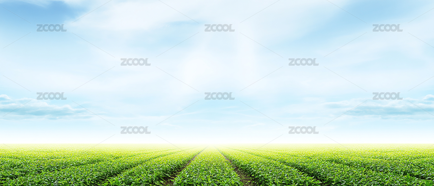 广阔的绿色田野与蓝天