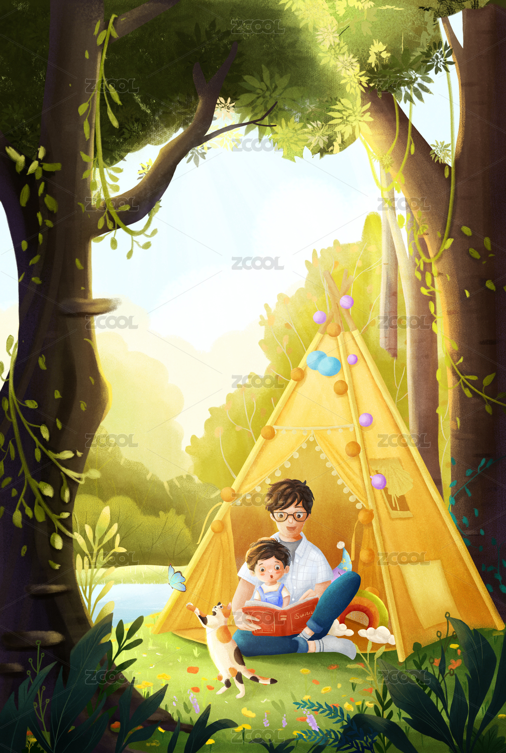 父爱,爸爸,儿子,亲子,河边,读书,陪伴,妈妈,咖啡,猫
