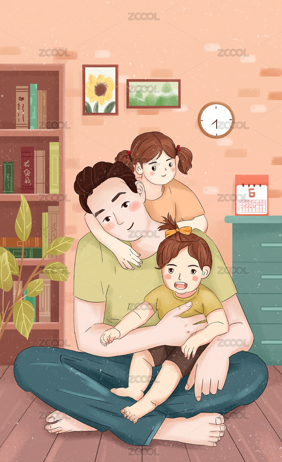 扁平室内爸爸带着孩子阅读学习温馨亲子时光