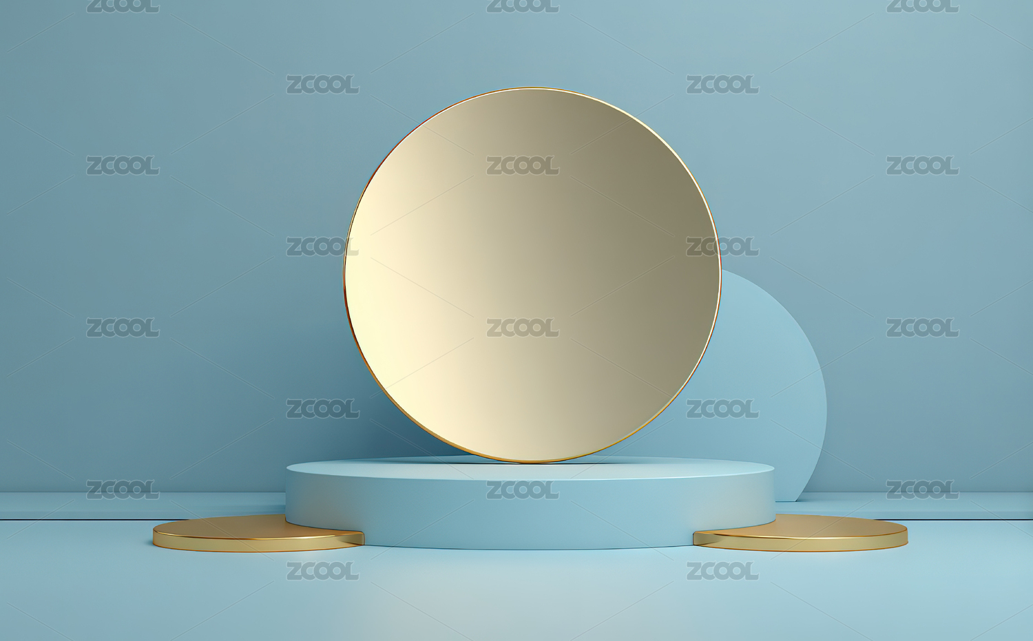 金色圆形平台与蓝色背景
