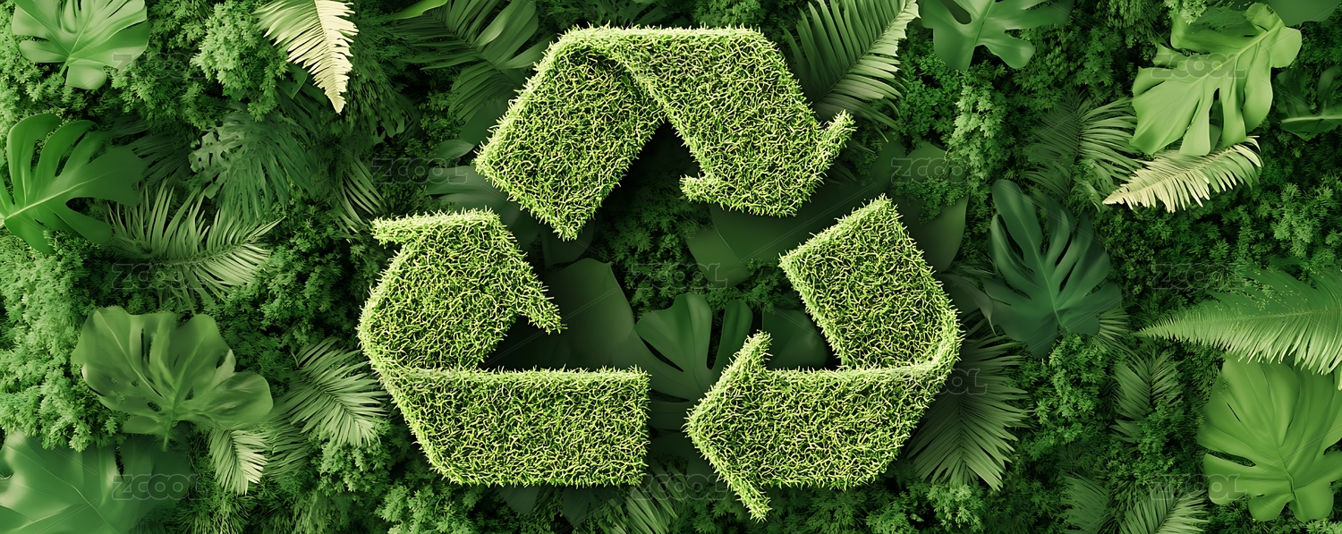 绿色回收标志在植物背景中
