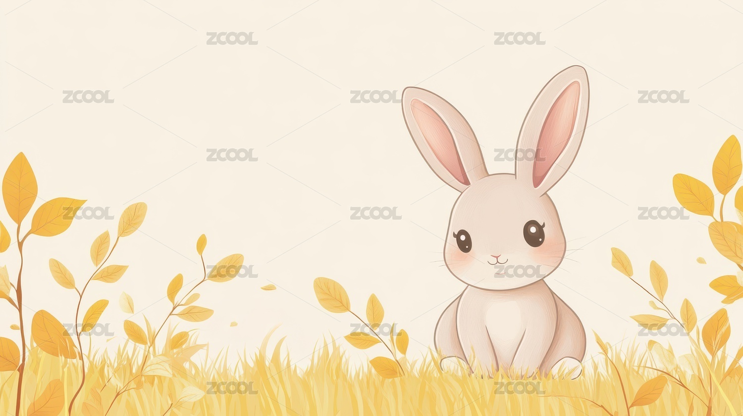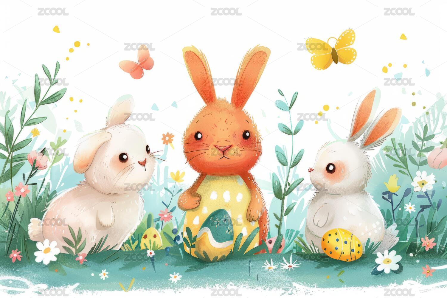 兔子彩色花卉插图装饰复活节快乐贺卡
