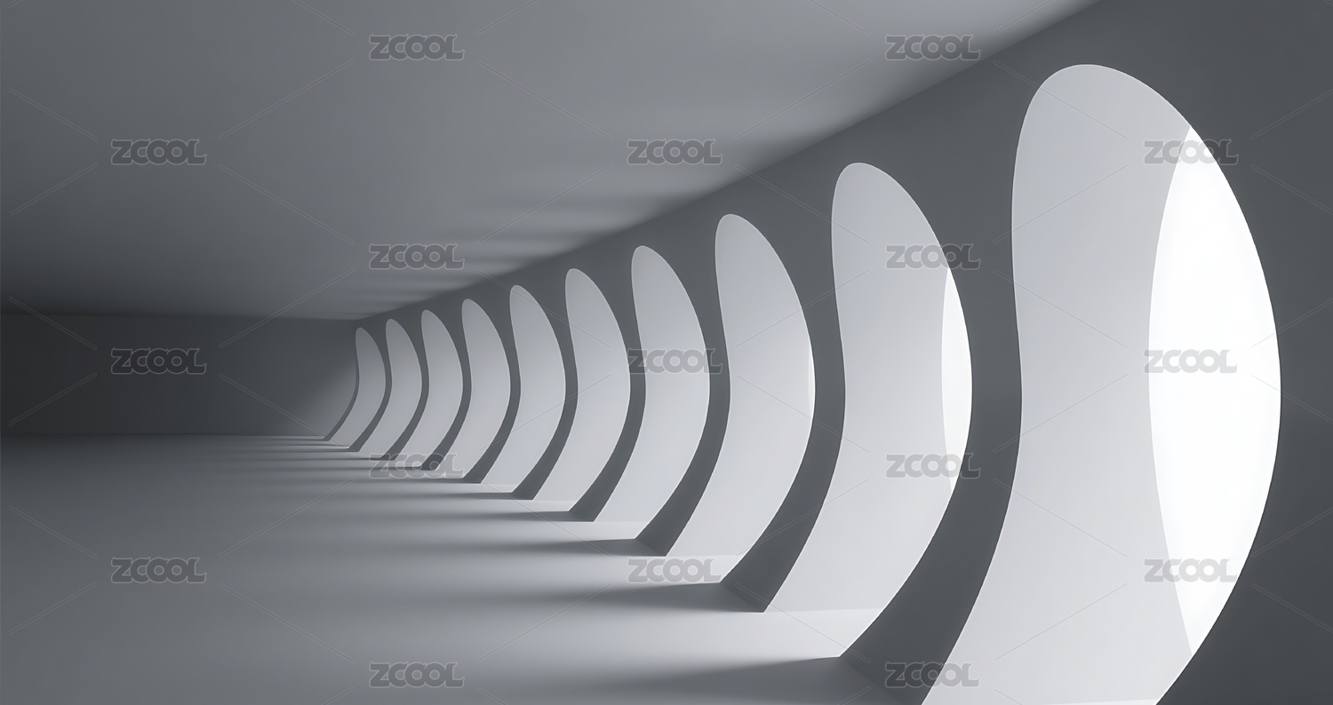 现代拱形走廊的光影效果
