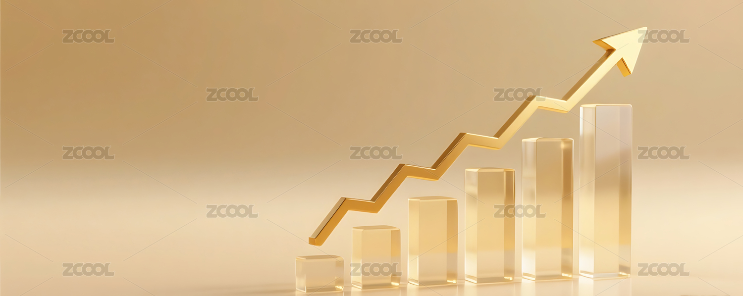 金色渐变玻璃质感金融柱状图增长箭头背景
