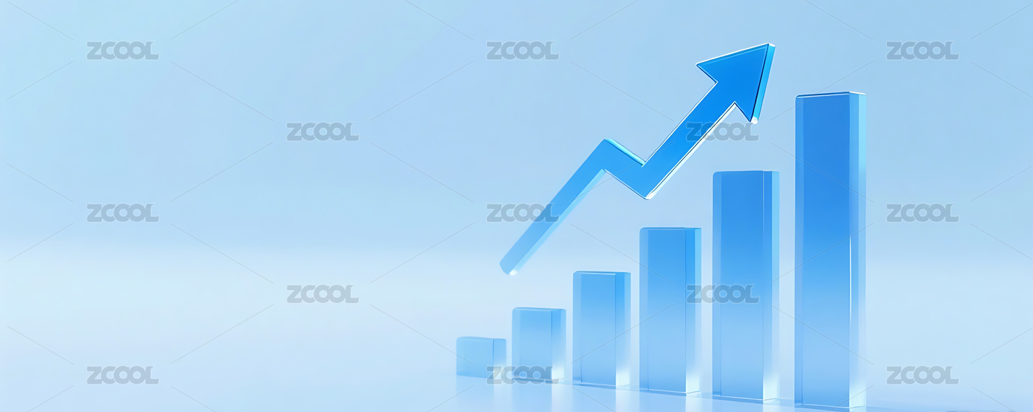 蓝色渐变玻璃质感金融柱状图增长箭头背景