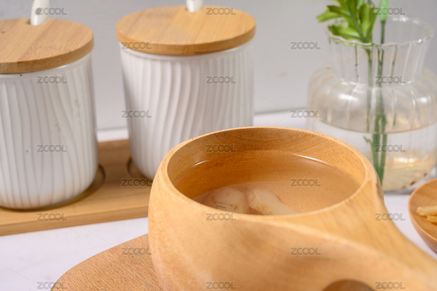 桌面上的杯子里的甘甜可口的夜交藤茶