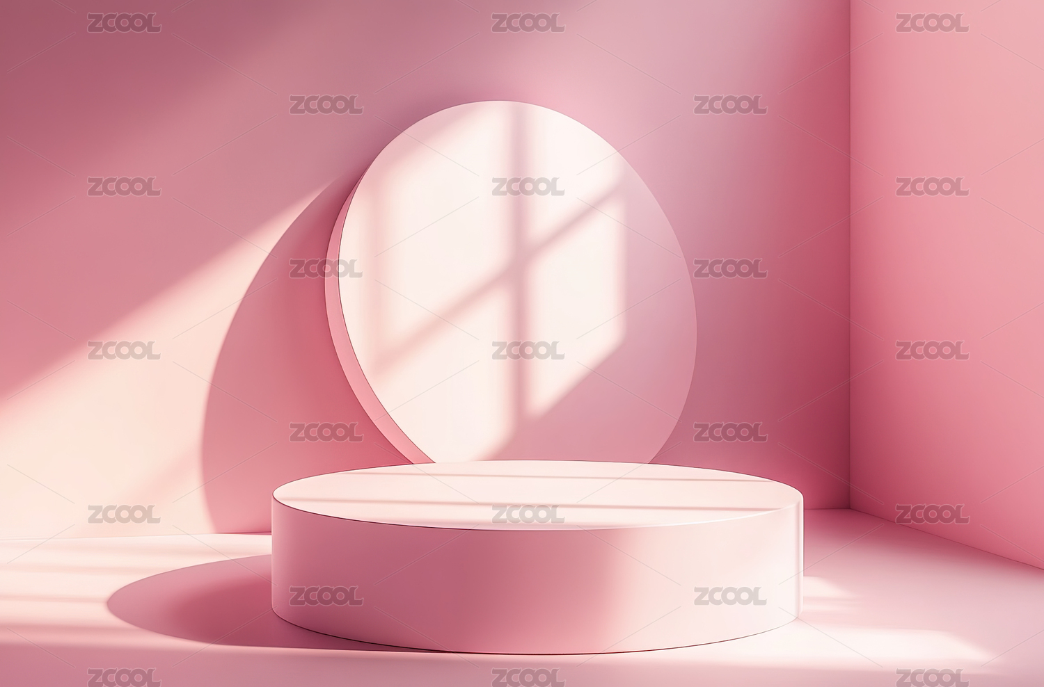 粉红色背景下的产品展台
