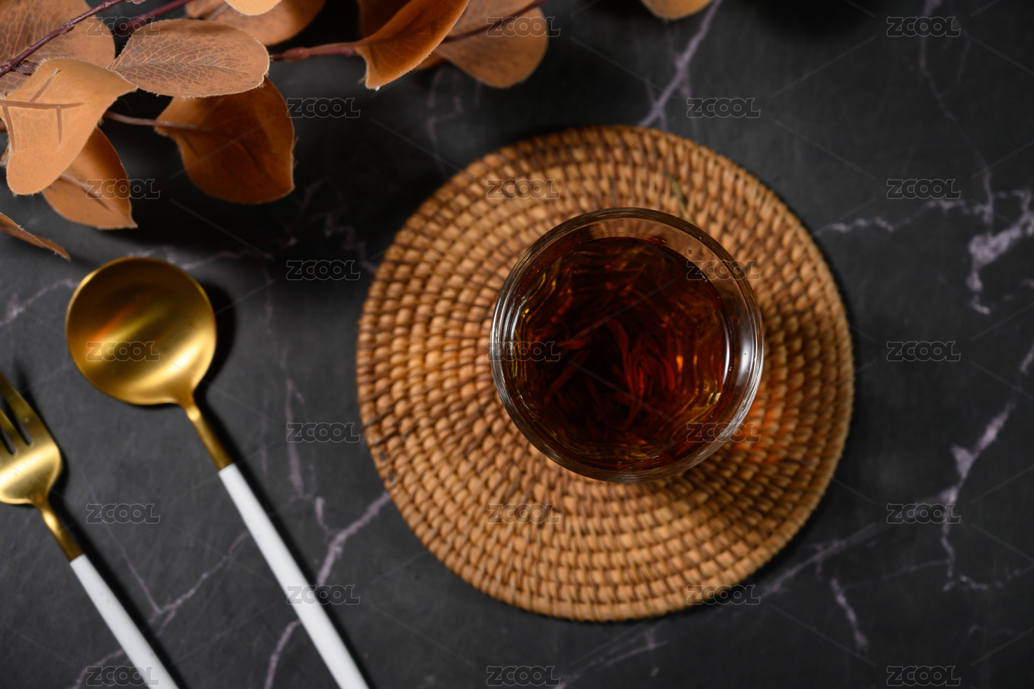 桌面上的杯子里的美味可口的滇红金针茶