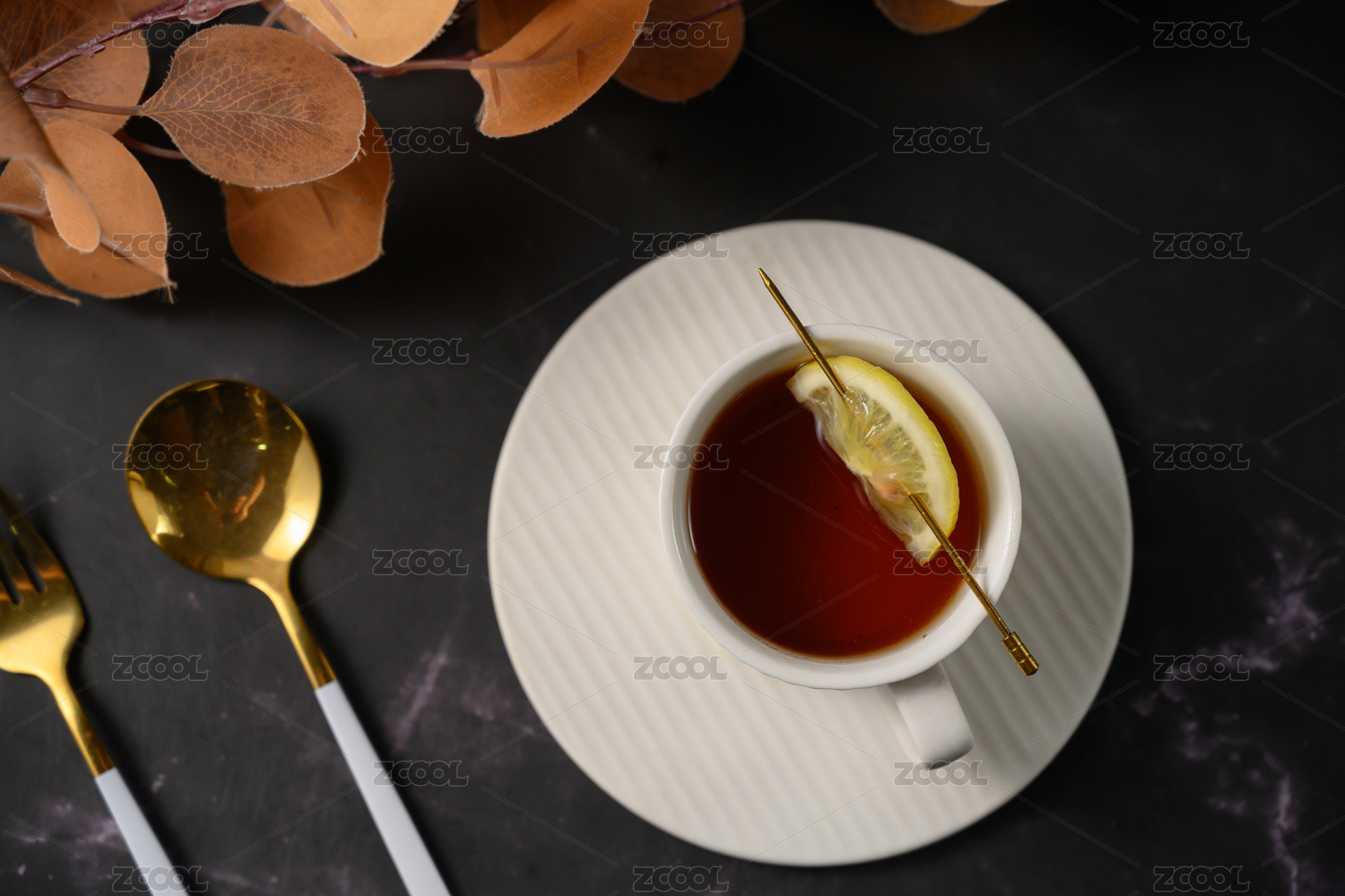 桌面上的盘子里的美味可口的柠檬茶