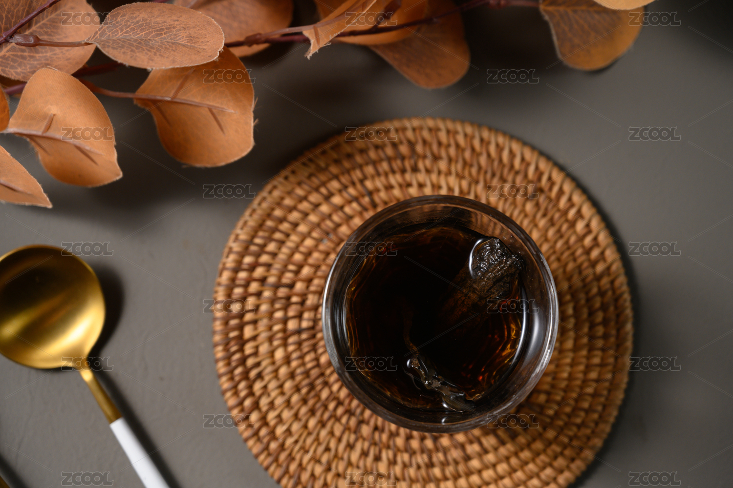 桌面上的杯子里的甘甜可口的地蚕茶