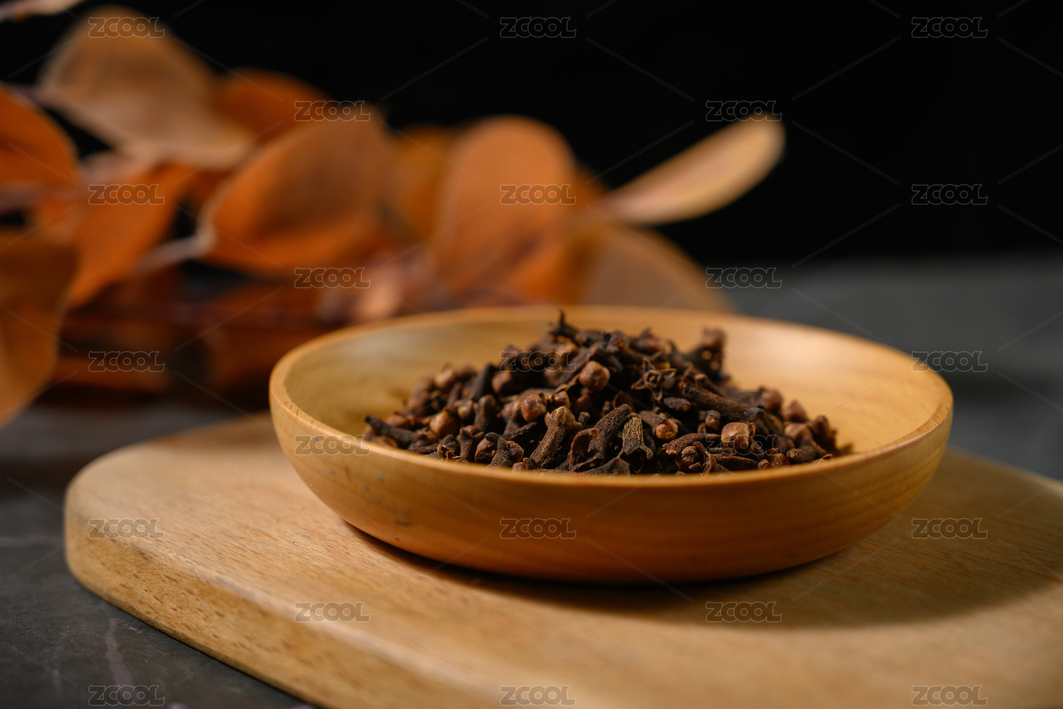 桌面上的盘子里的香气四溢的丁香