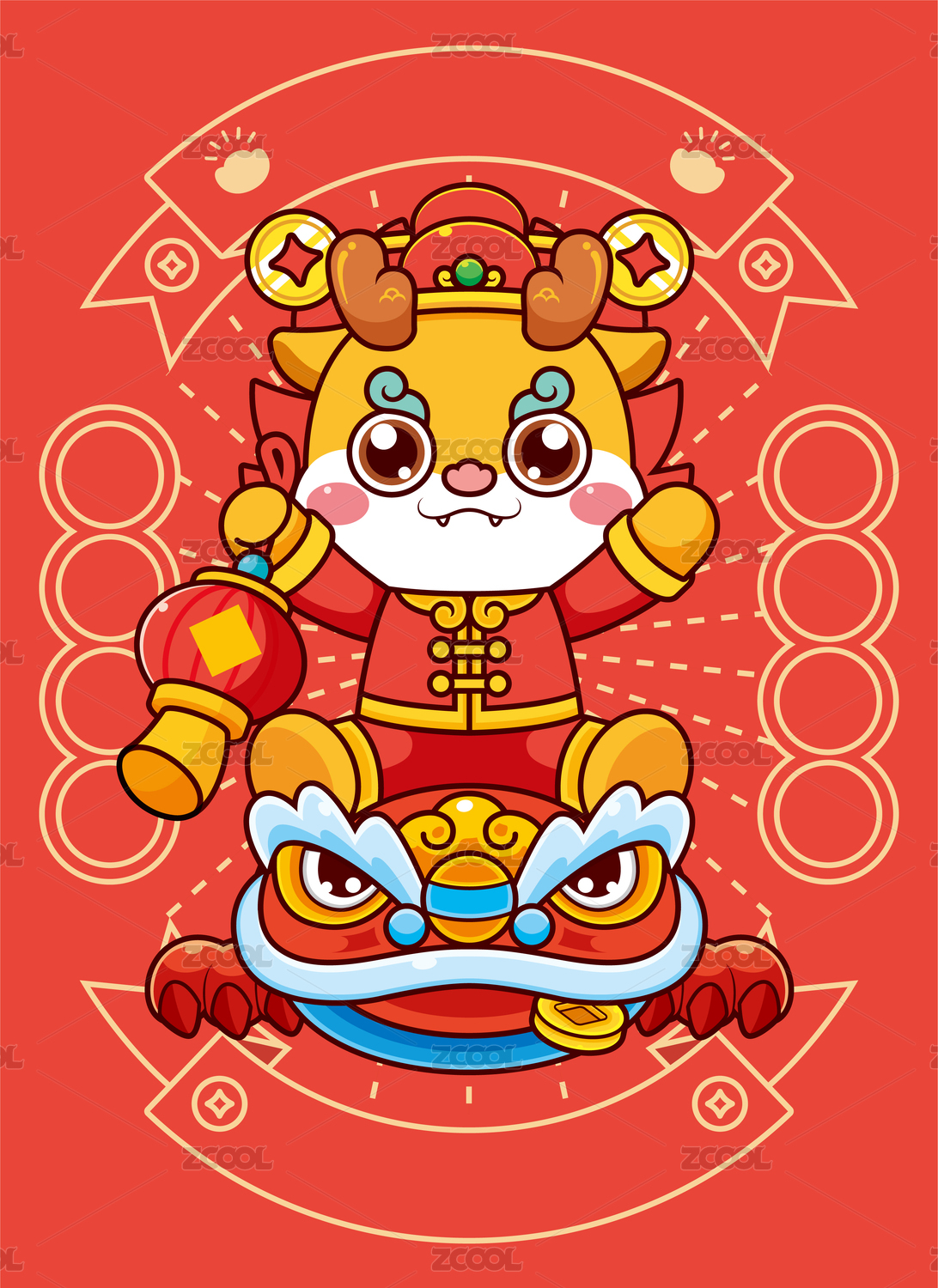 龙年春节国潮插画