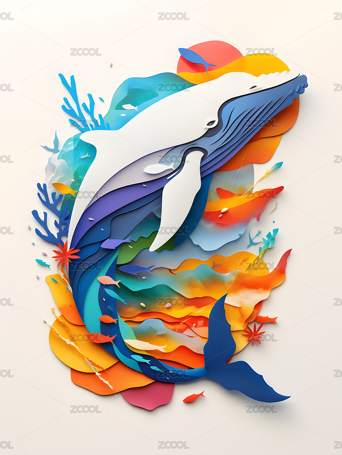剪纸,风格,立体,3D,动物,形象,卡通,动画,拟人,纸雕