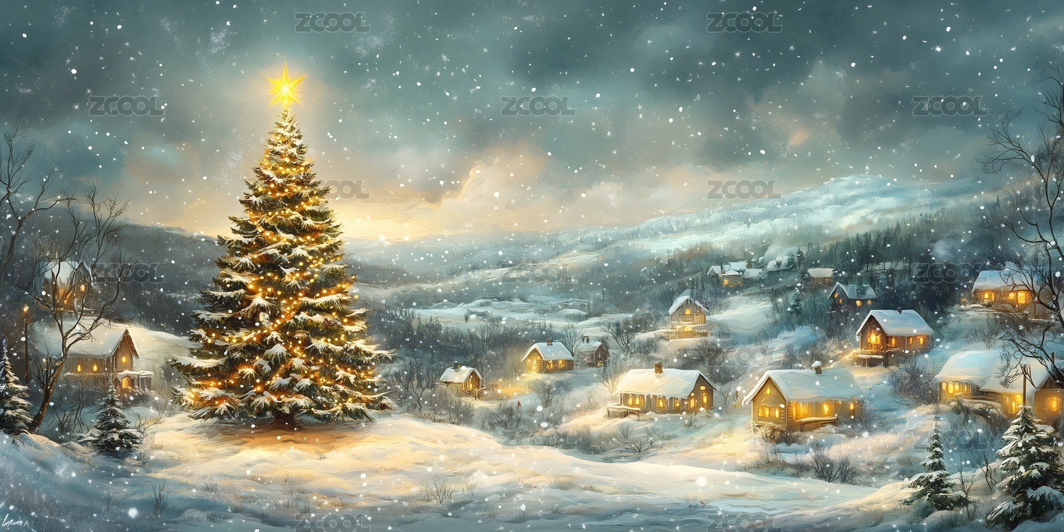 2025圣诞节新年雪人圣诞树明信卡片壁纸