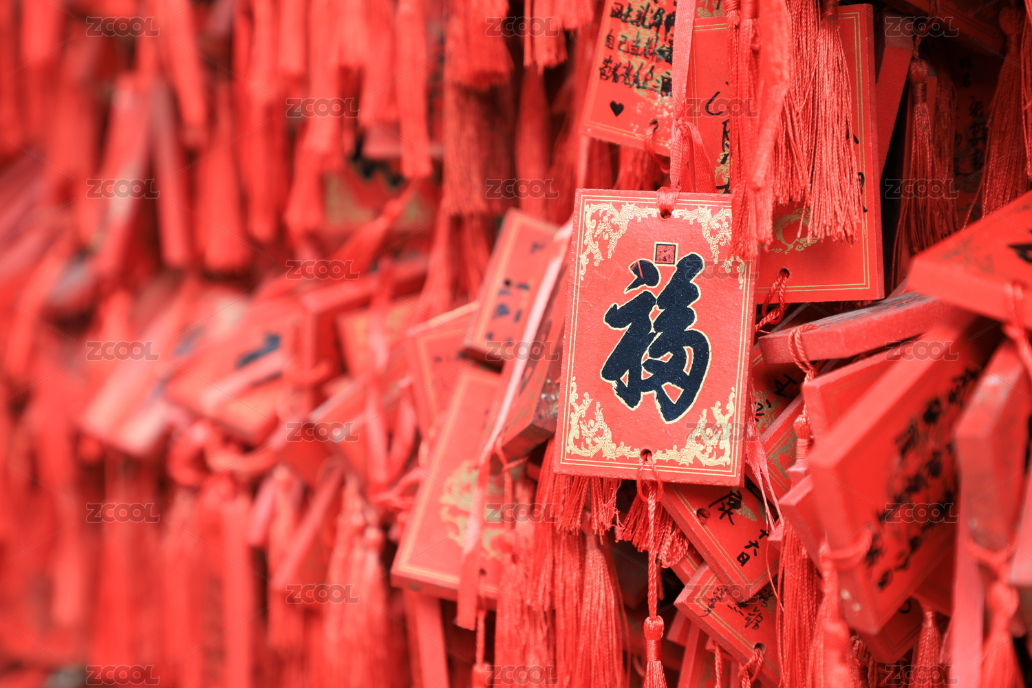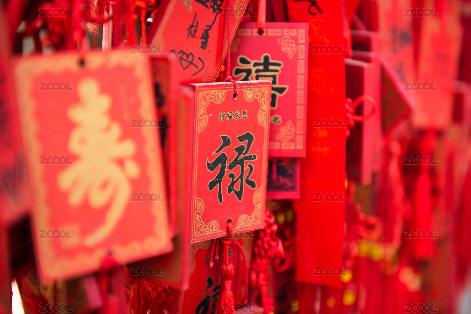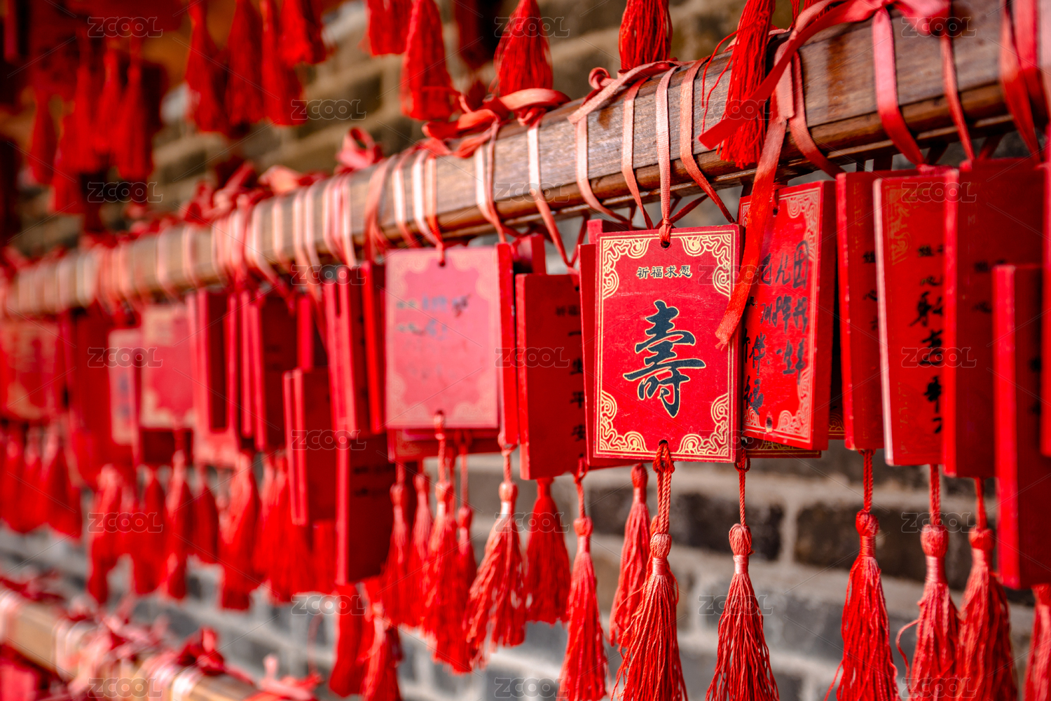 寺庙里破旧的红色祈祷祝福木牌背景素材特写