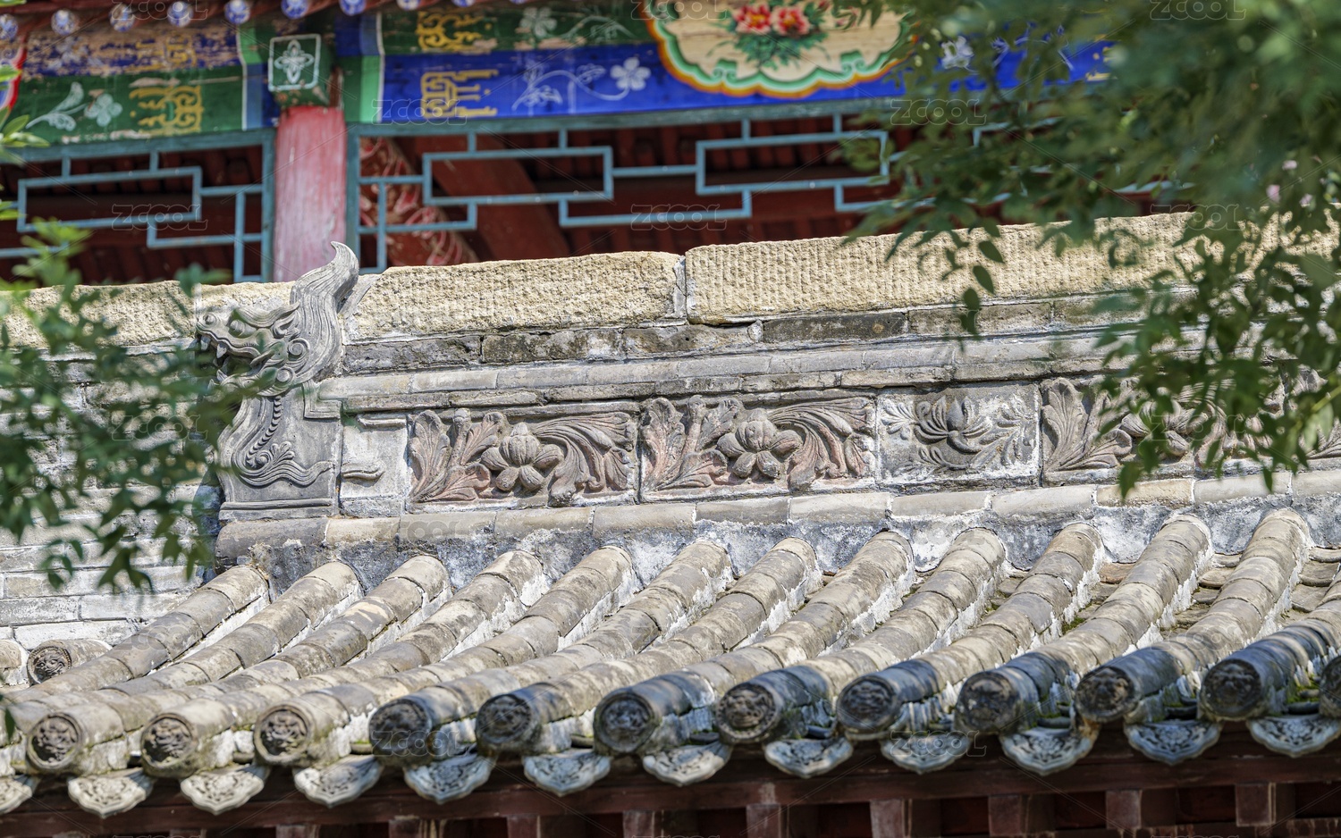 中国山西省平遥县古城内明清民居建筑房檐屋顶局部特写
