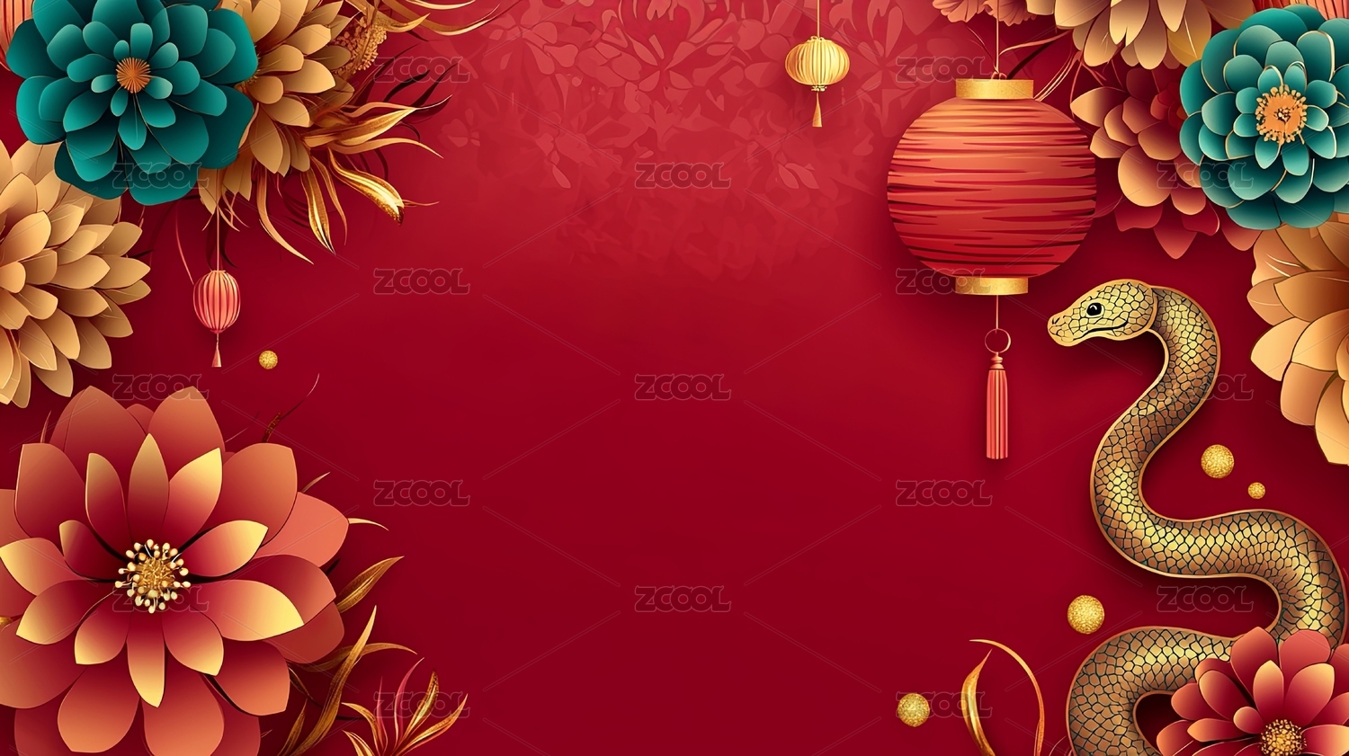 新年,元旦,过年,红色,背景板,蛇,礼盒,彩带,灯笼