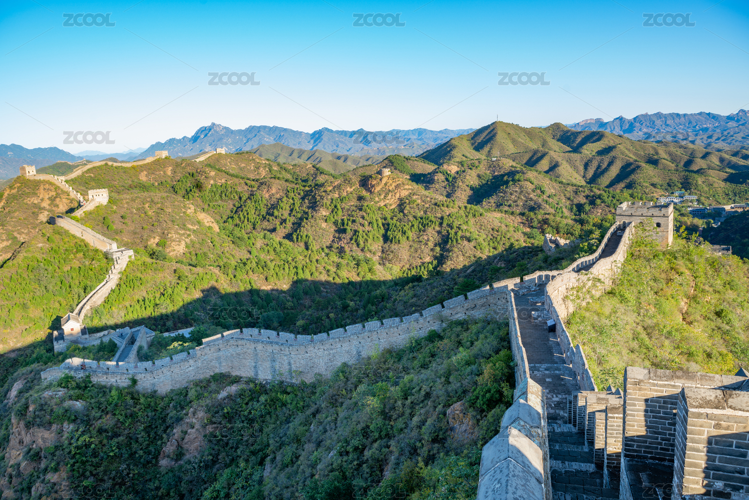 晴天下的中国北京长城绿意葱葱的金山岭