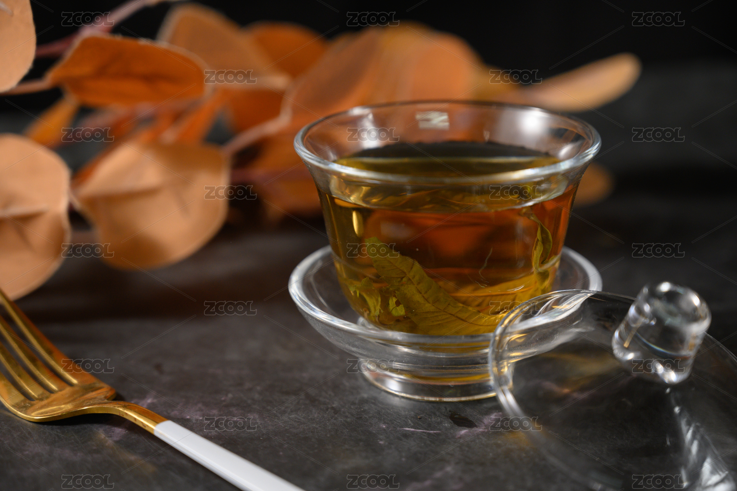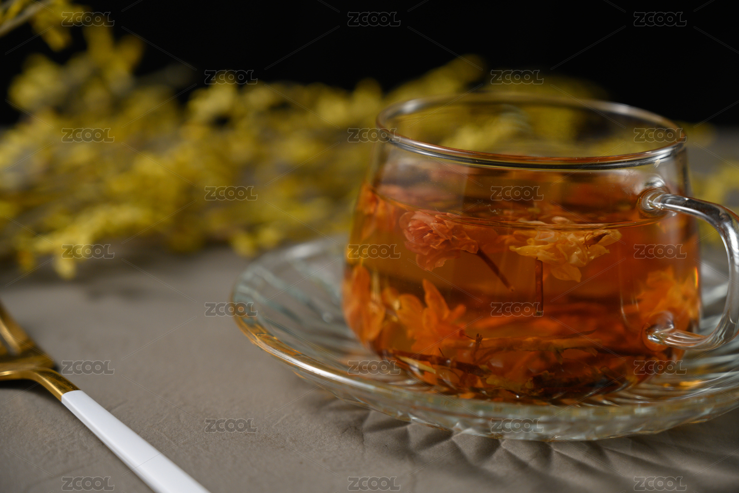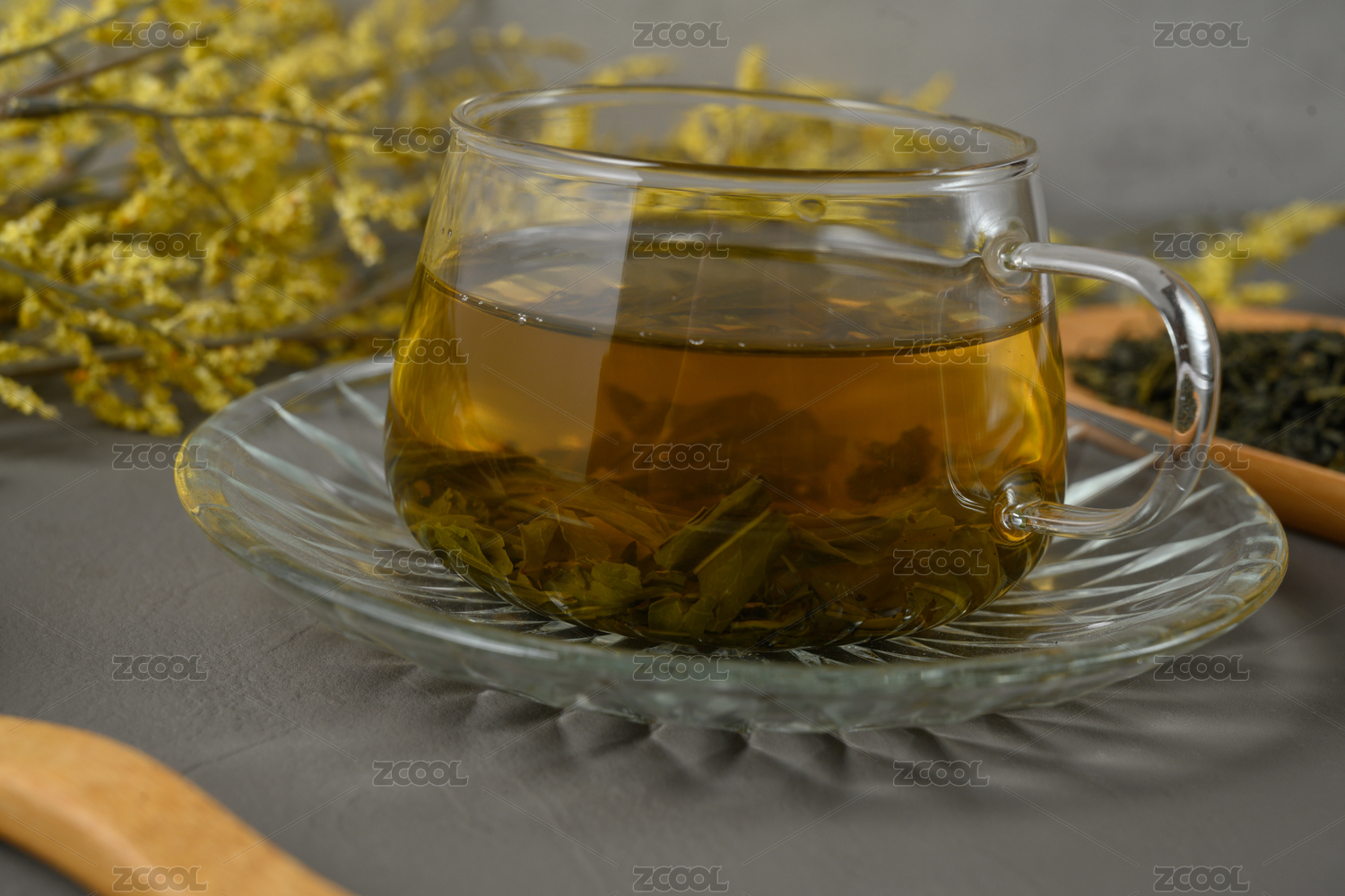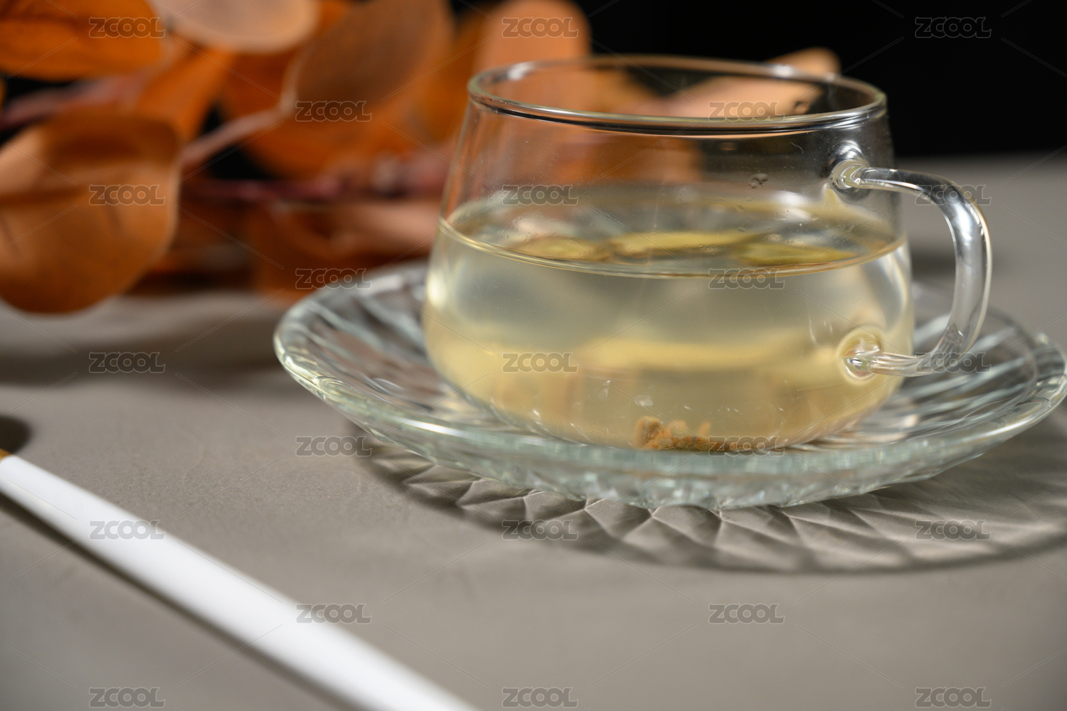 桌面上的杯子里的甘甜可口的赶黄草茶