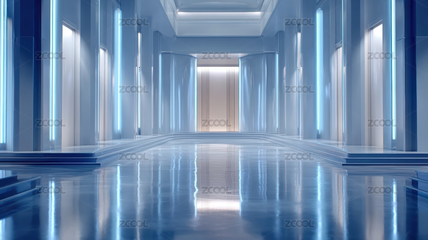 未来走廊空间 科技氛围 蓝色光影
