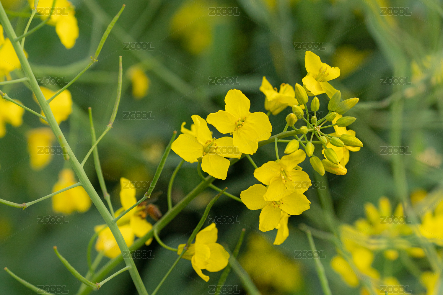 金黄茂密的盛开油菜花,蜜蜂在采蜜