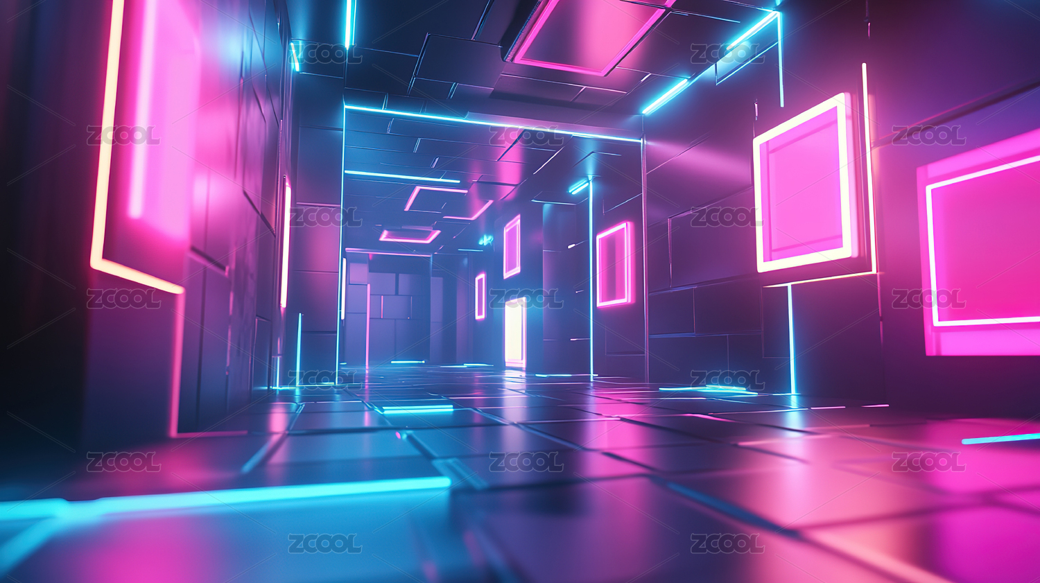抽象霓虹灯光建筑空间走廊背景时尚朋克摇滚