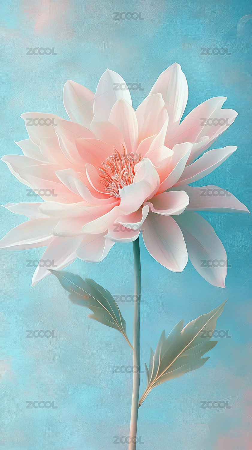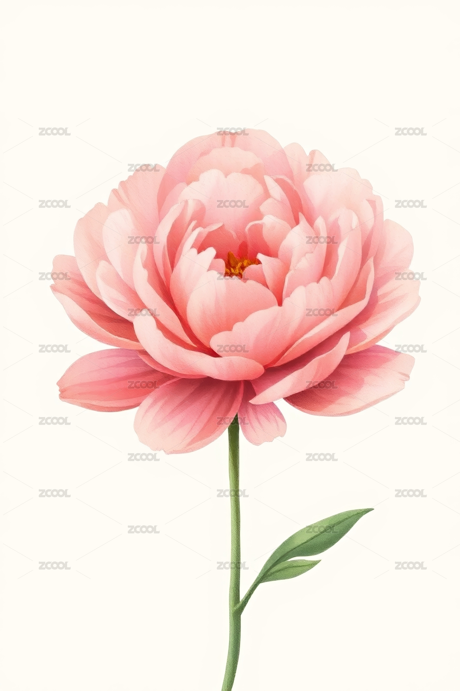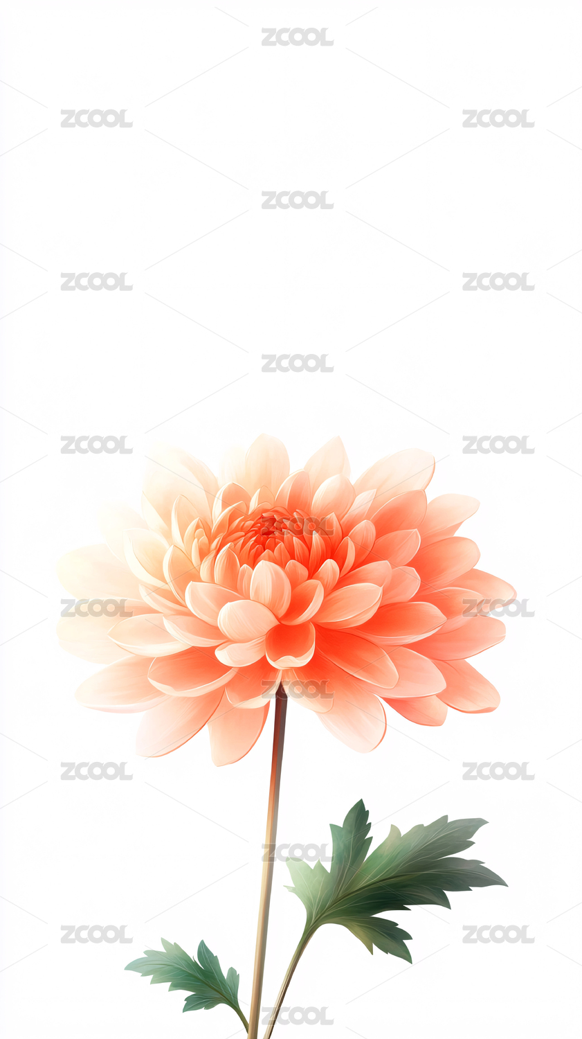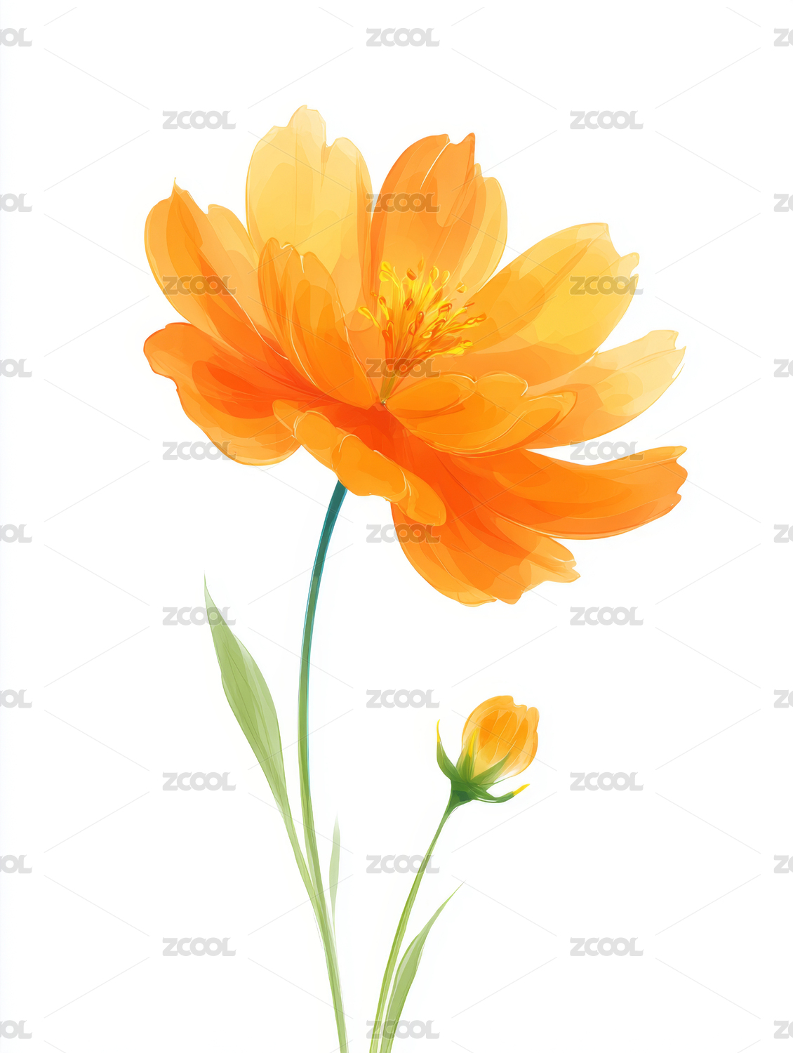 有一朵橙色的大花茎上有绿色的叶子高清图片