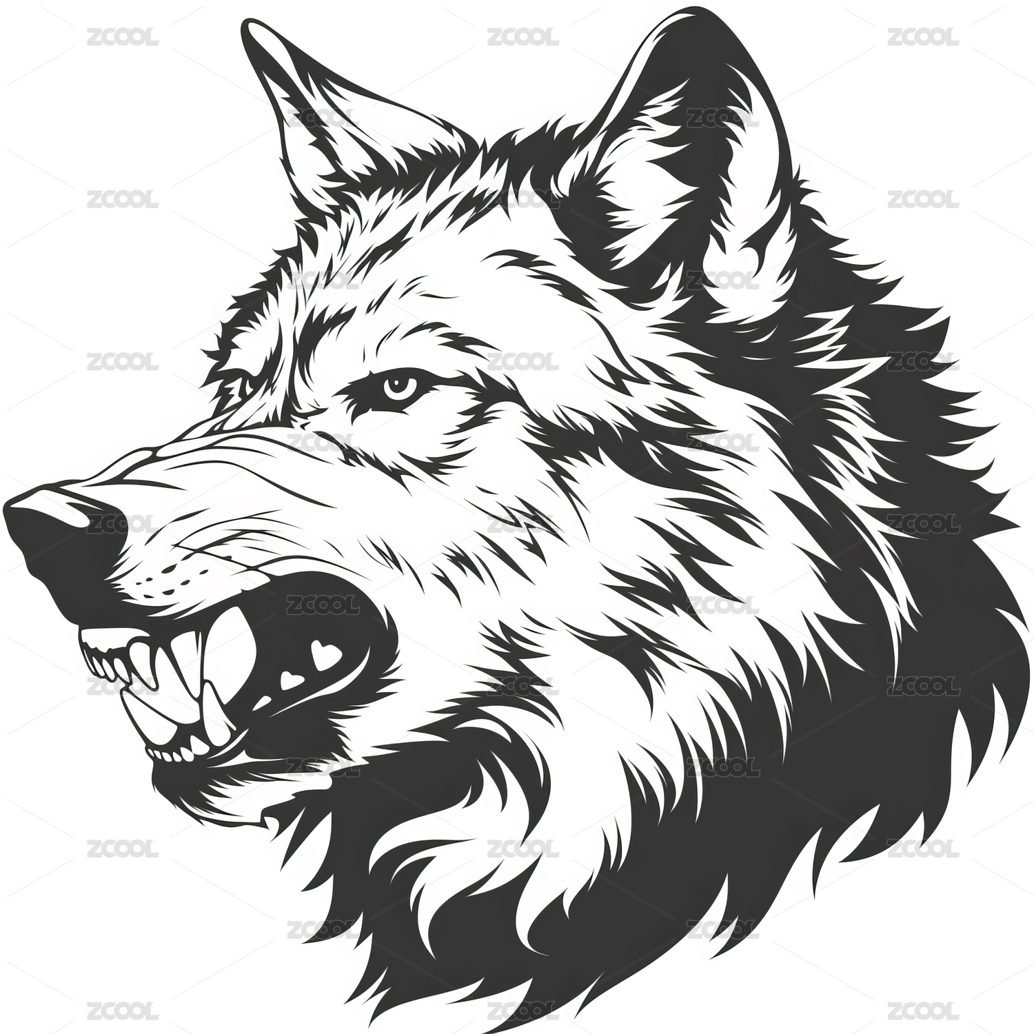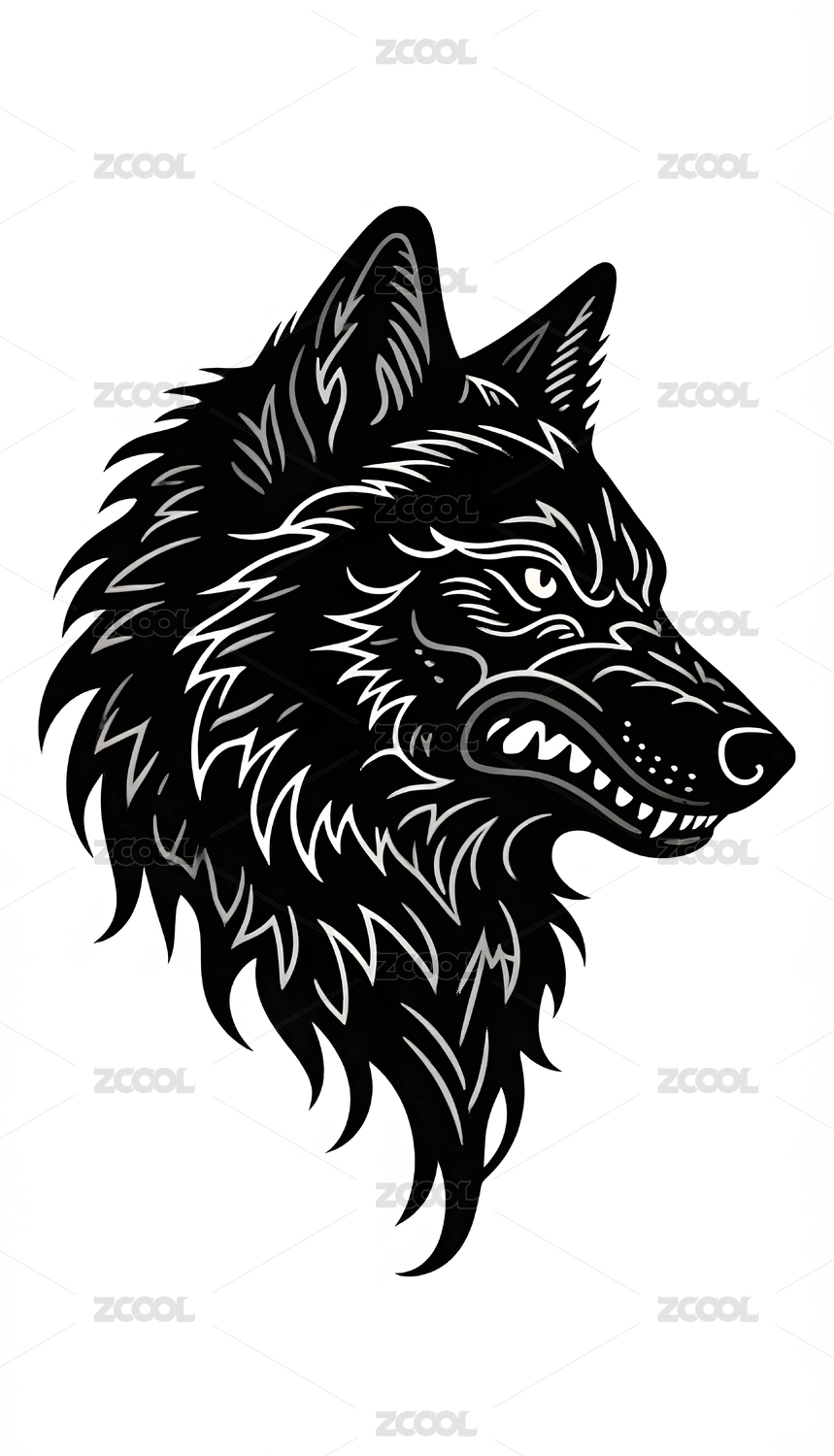狼头黑白线条插画