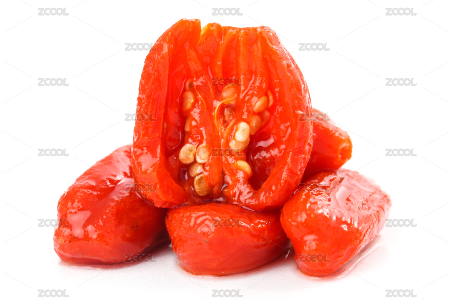 白底上放着一颗红枸杞