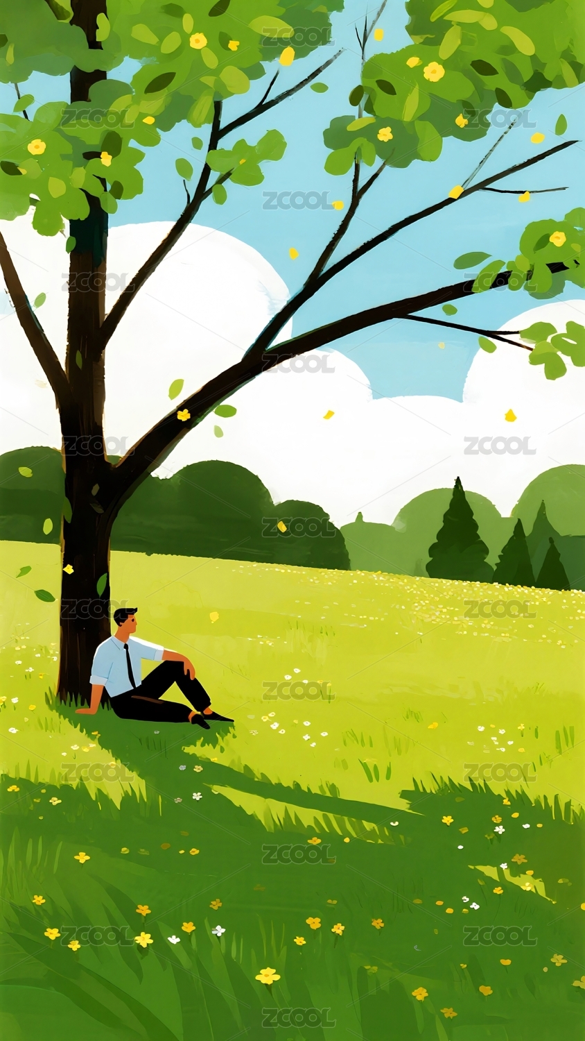 男生户外银杏植物插画