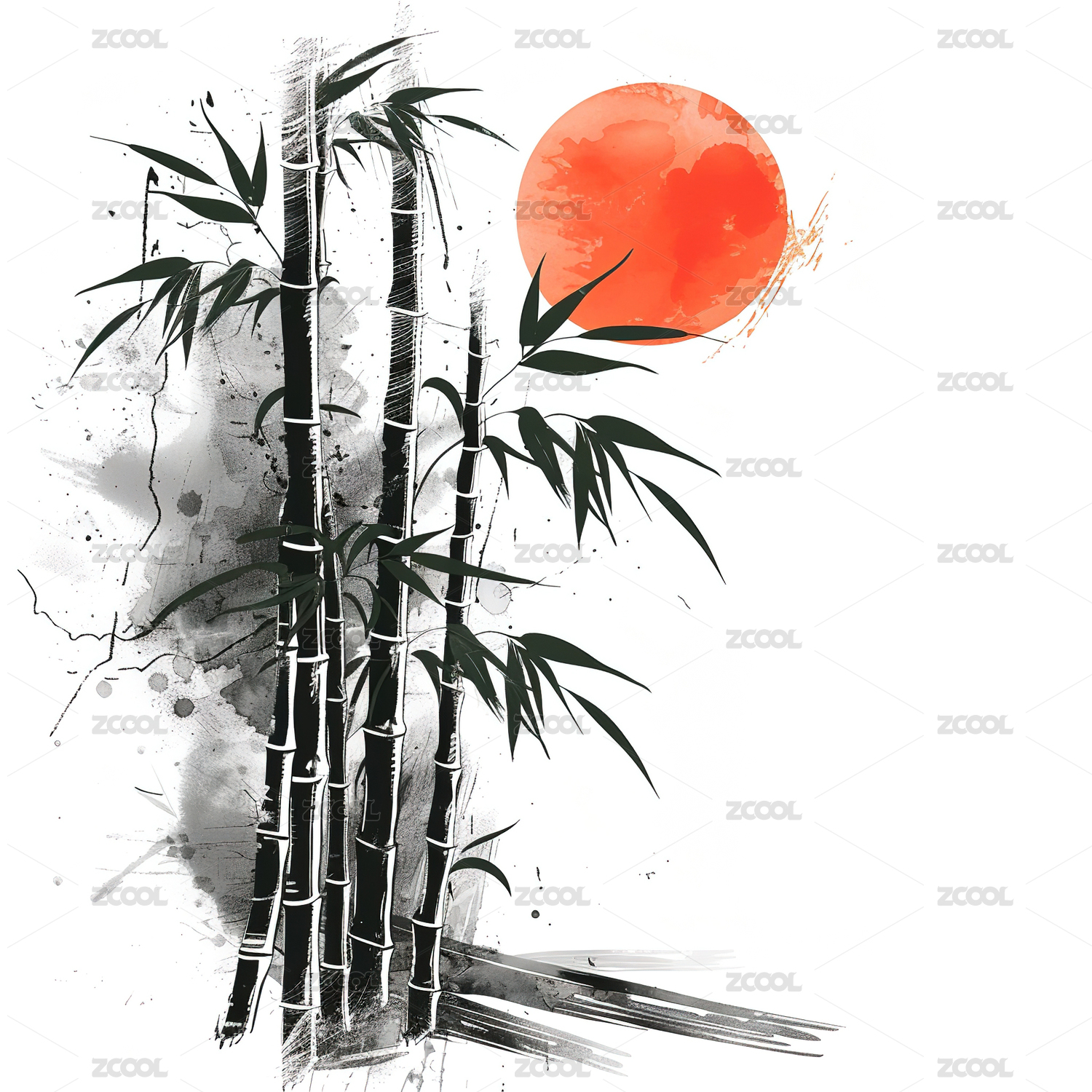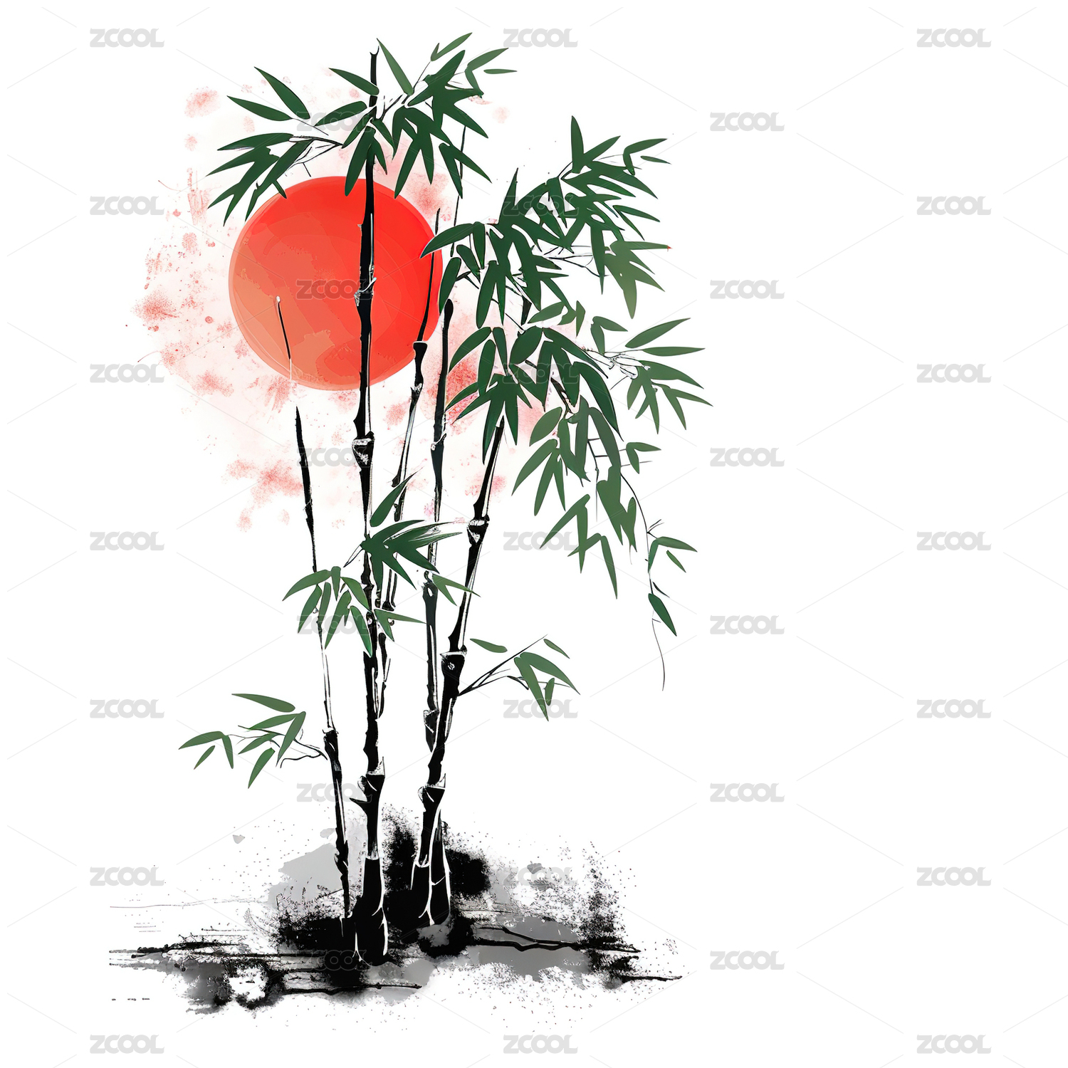 水墨画,中国画,竹子,竹林,旭日,朝阳,山水画,水彩画,东方艺术,传统艺术