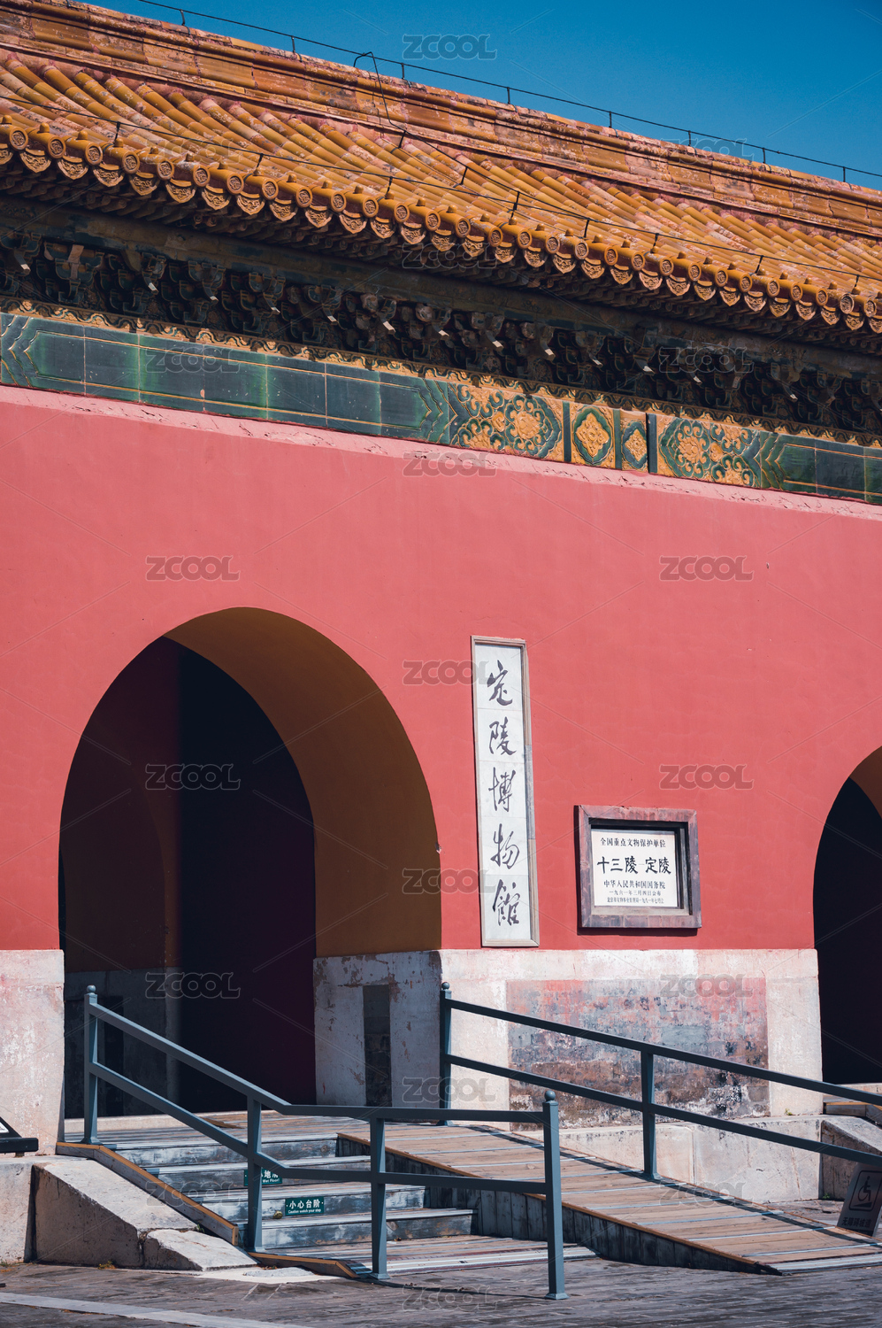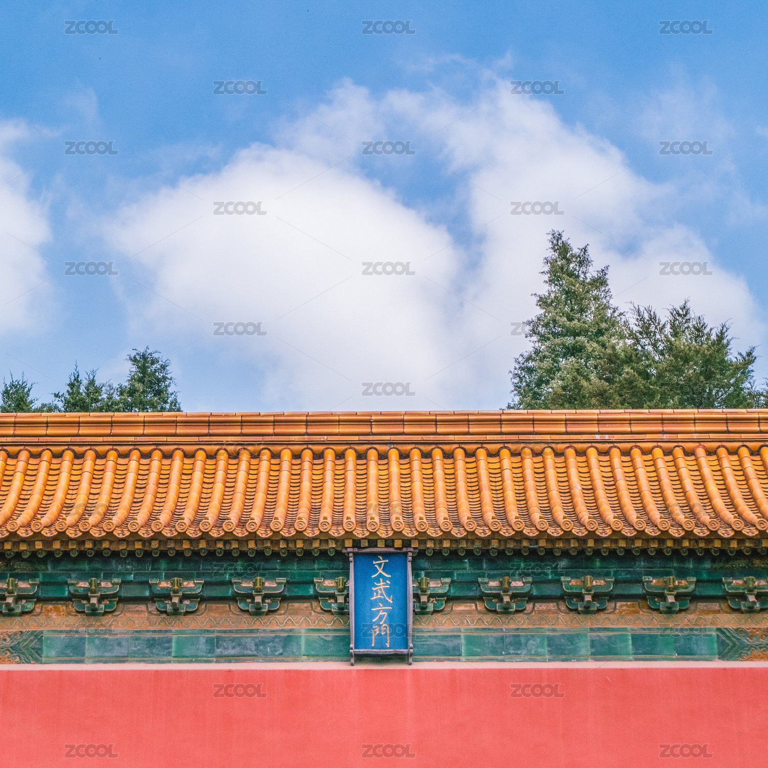中国北京故宫红色城墙上的东方古代建筑阁楼