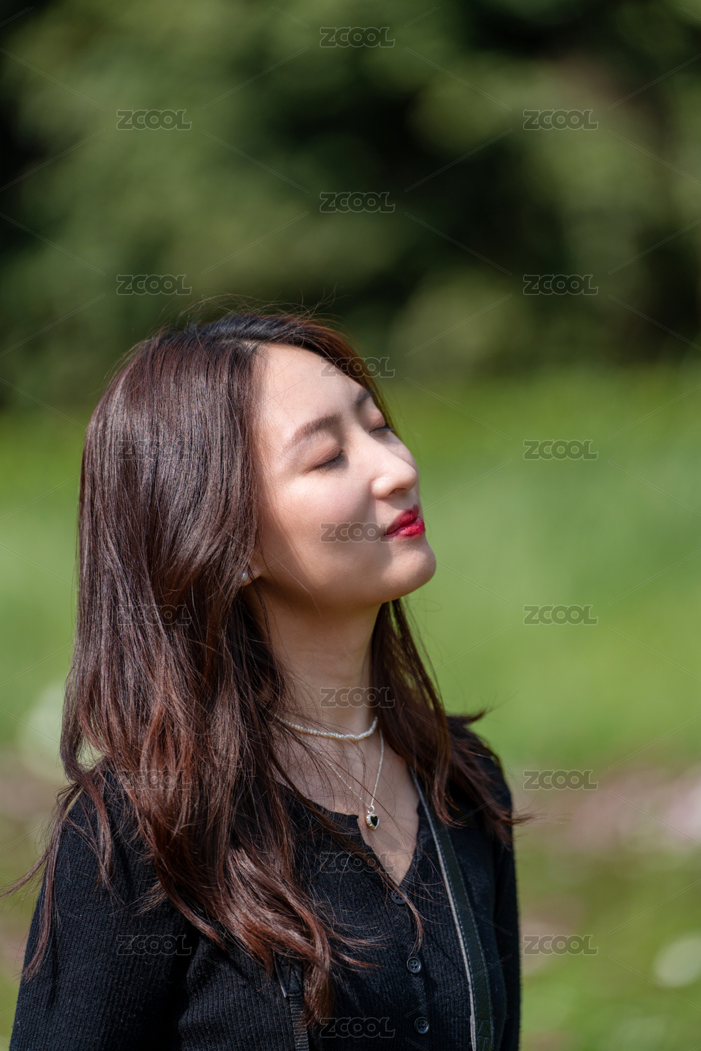 户外美丽的亚洲美女神态特写