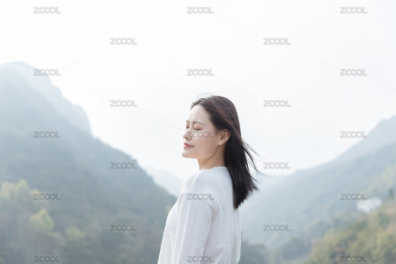 清新美女山间放松