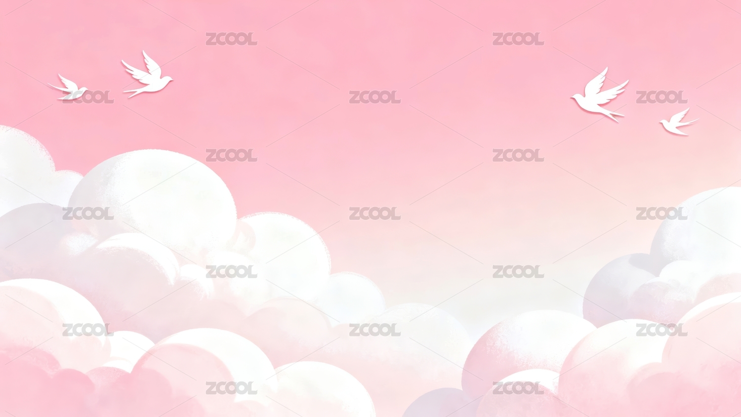 粉色背景天宫仙鹤飞舞逐月唯美梦幻插画