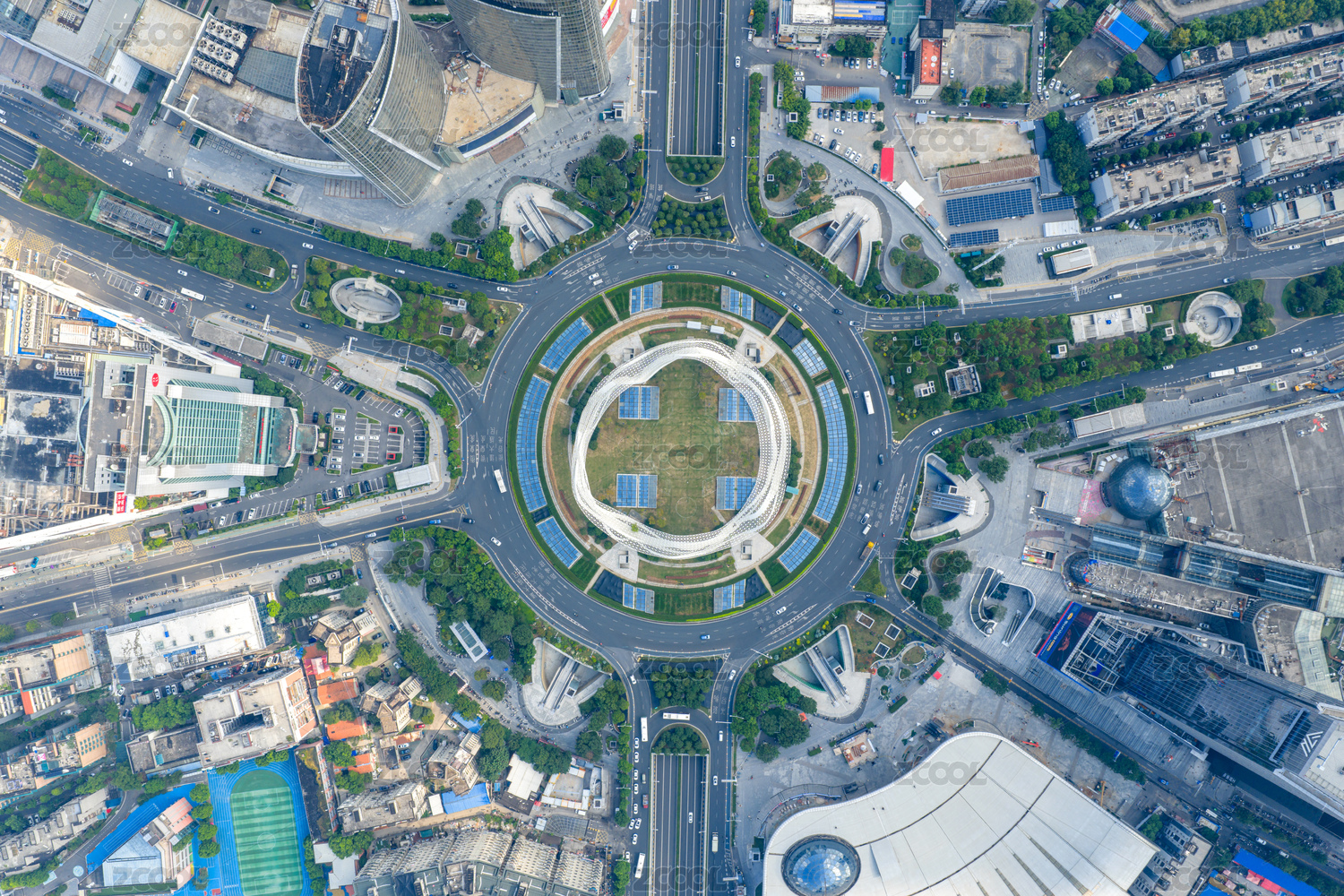 航拍湖北省武汉市光谷广场城市道路交通环岛