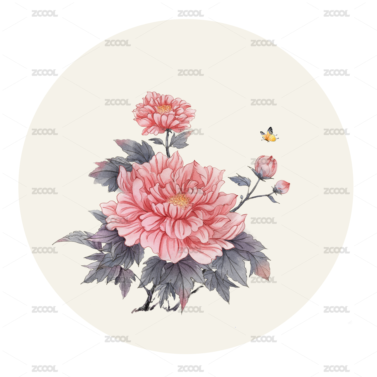牡丹花,水墨,中国风,花卉,植物,装饰,花枝