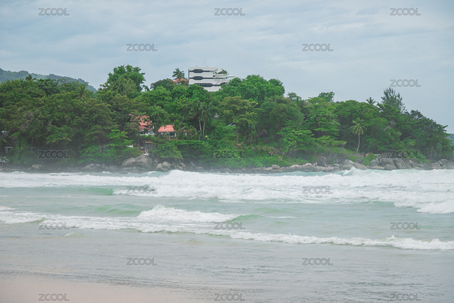 泰国普吉岛卡伦海滩日落海滨热带雨林自然风