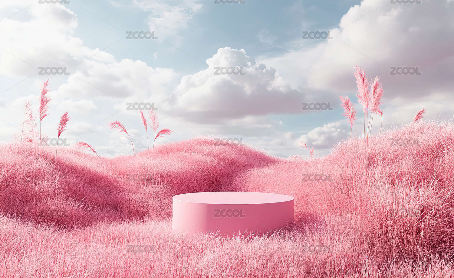 粉色圆台草地蓝天场景