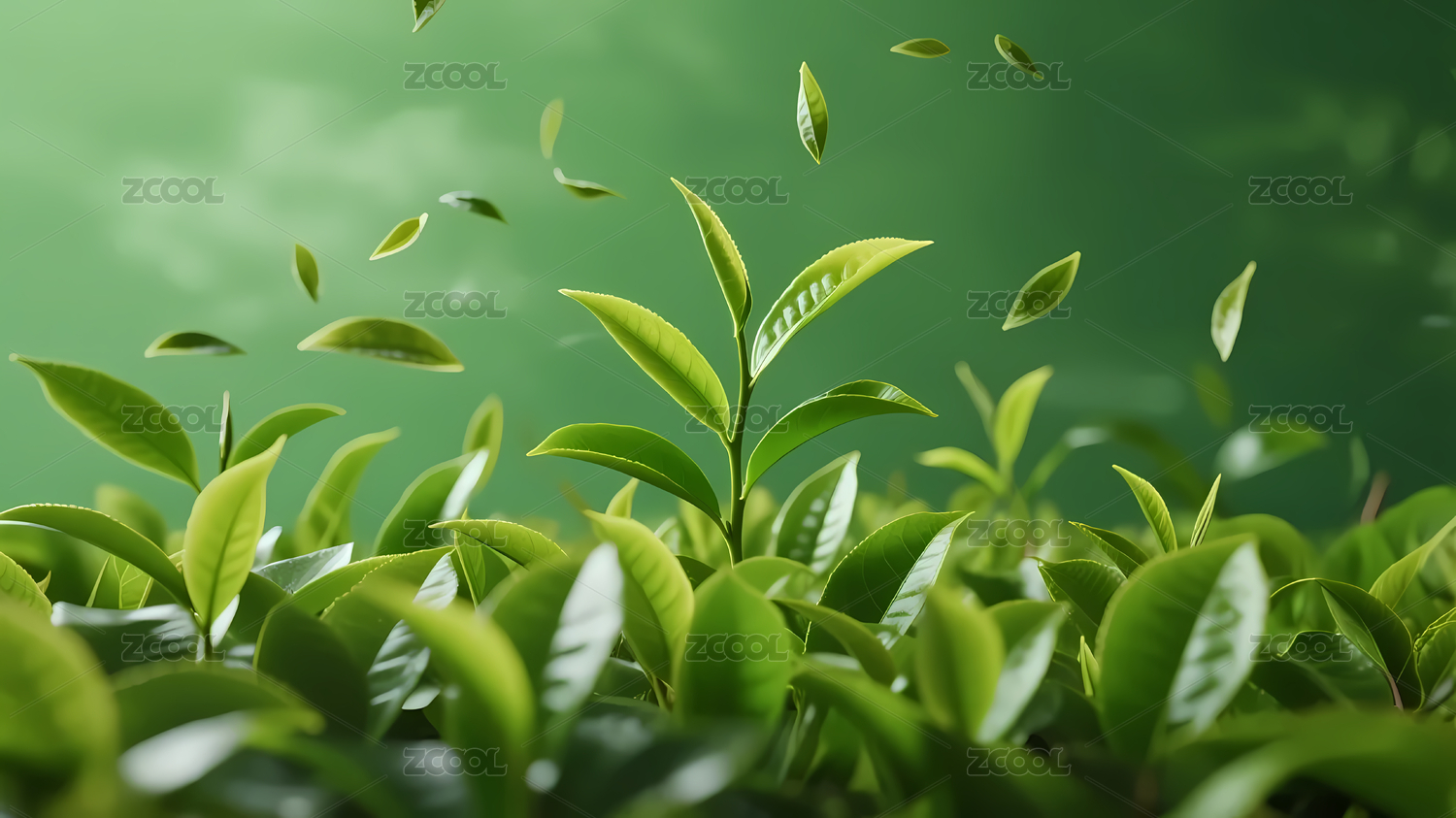 无人,绿色,有机食品,叶子,飞,清新,春天,草本,美,自然