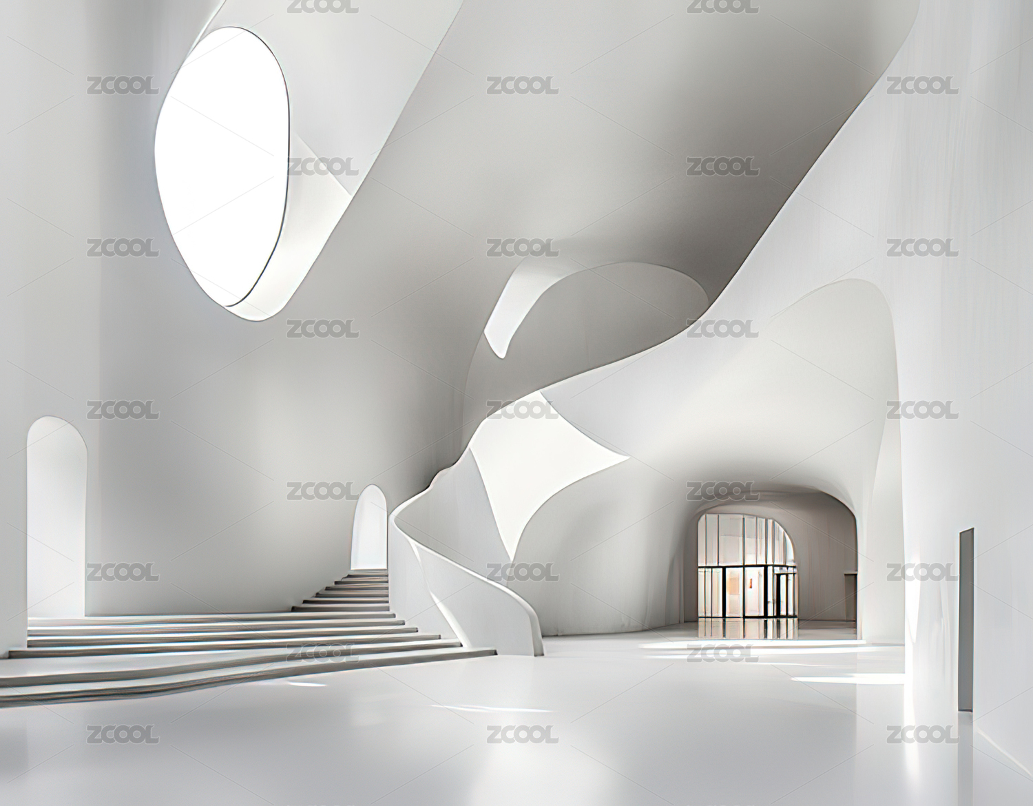 无人,现代,未来,人造空间,创造力,室内,AI数字艺术,干净,弯曲,三维图形