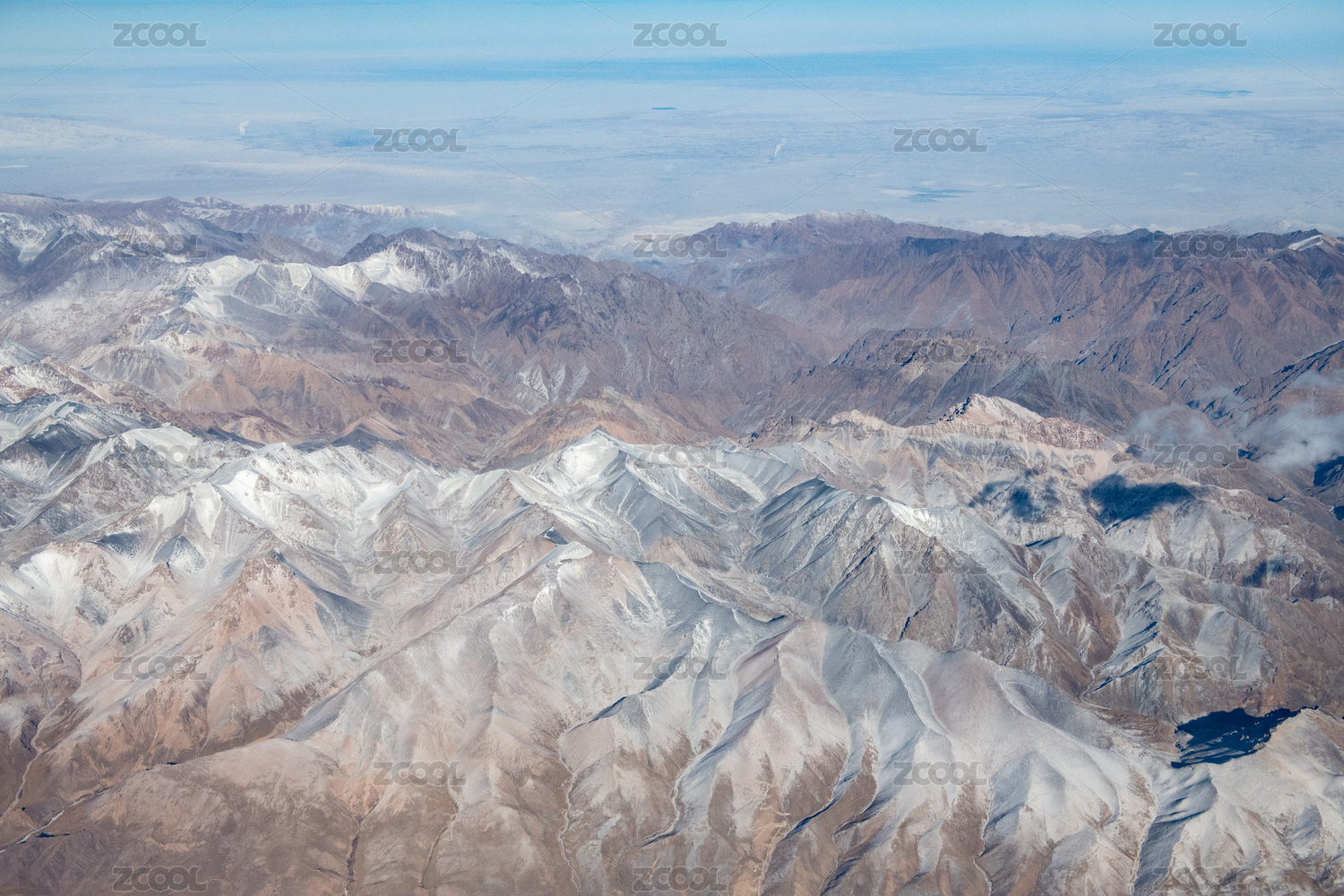 中国新疆乘坐飞机拍摄到西北雪山冬季风光