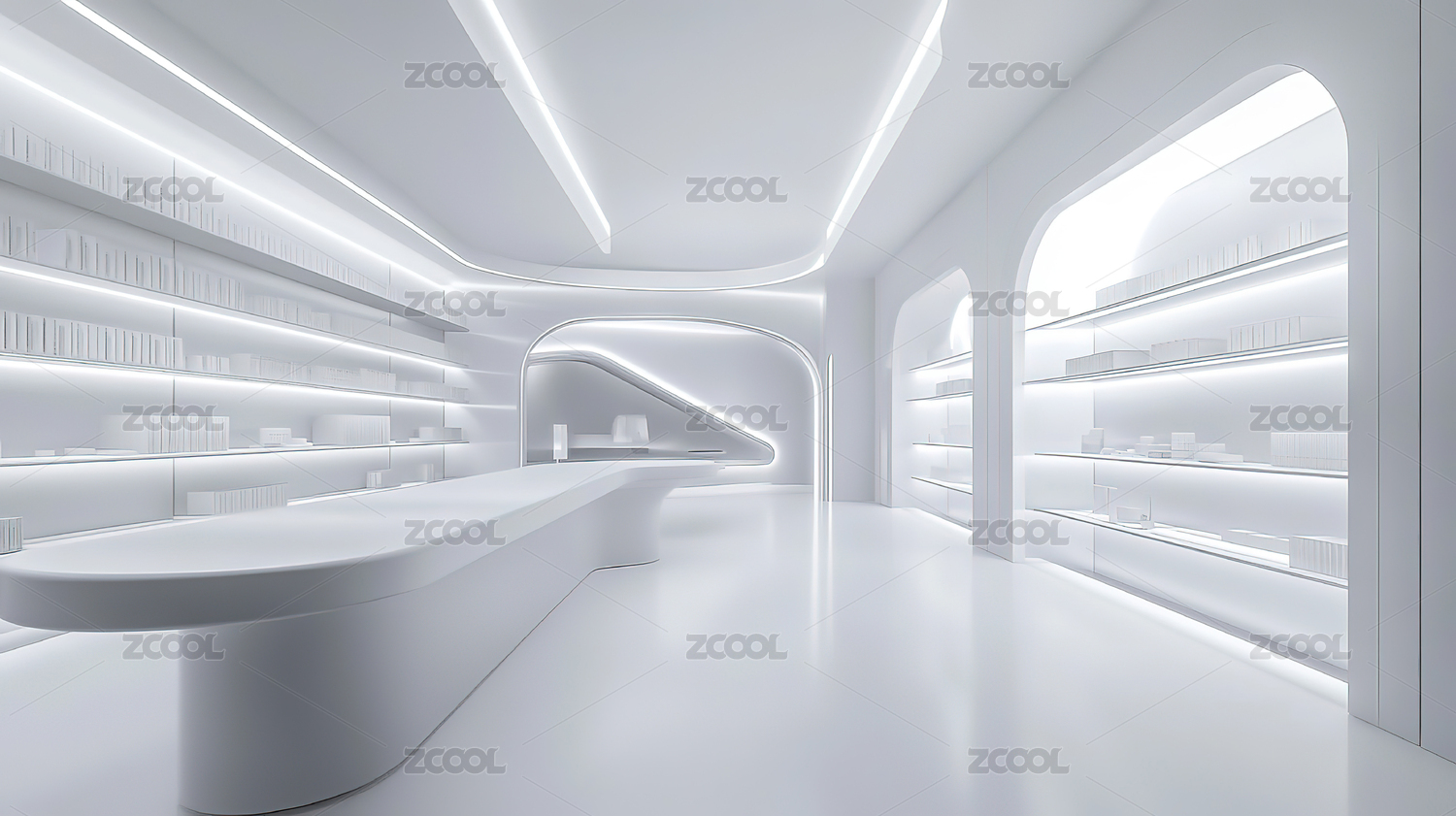 白色现代建筑室内空间设计背景