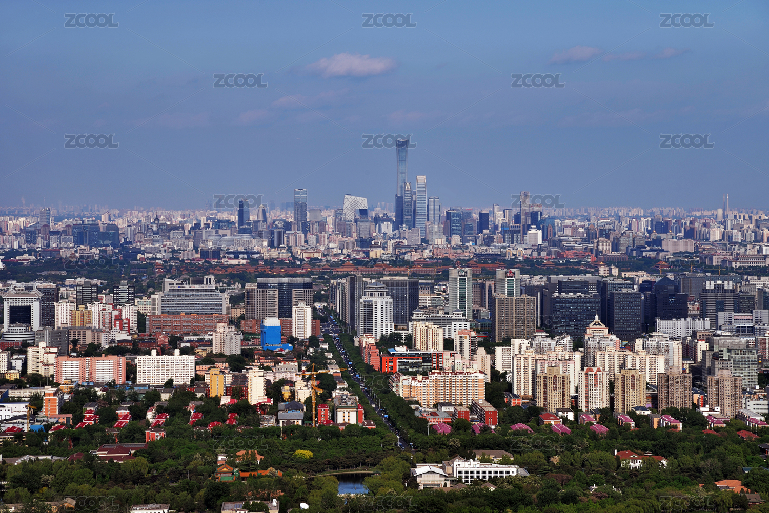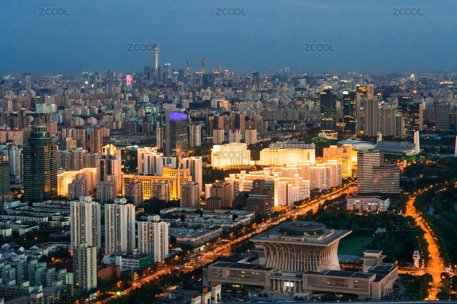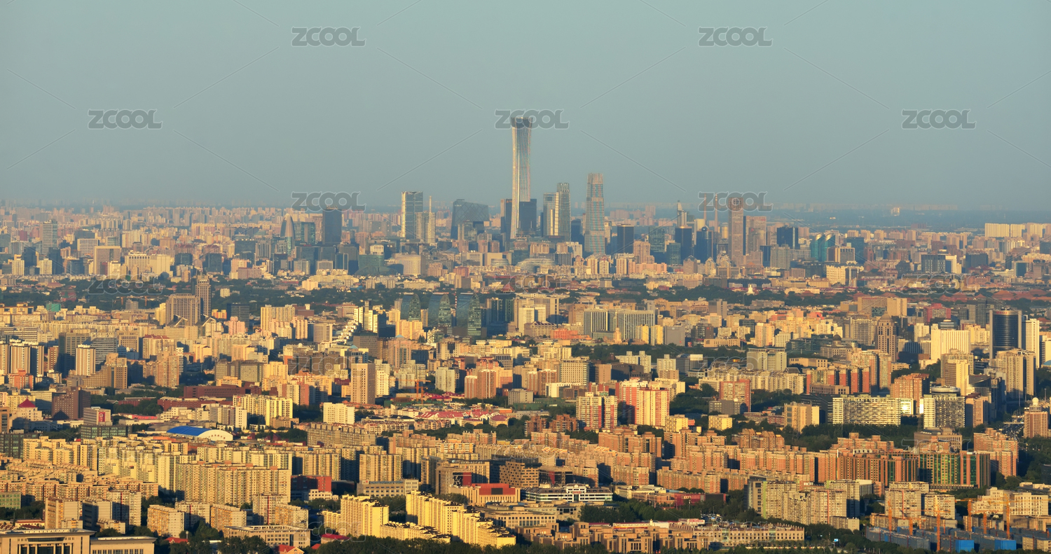 远眺黄昏时分的北京国际贸易中心商务区建筑