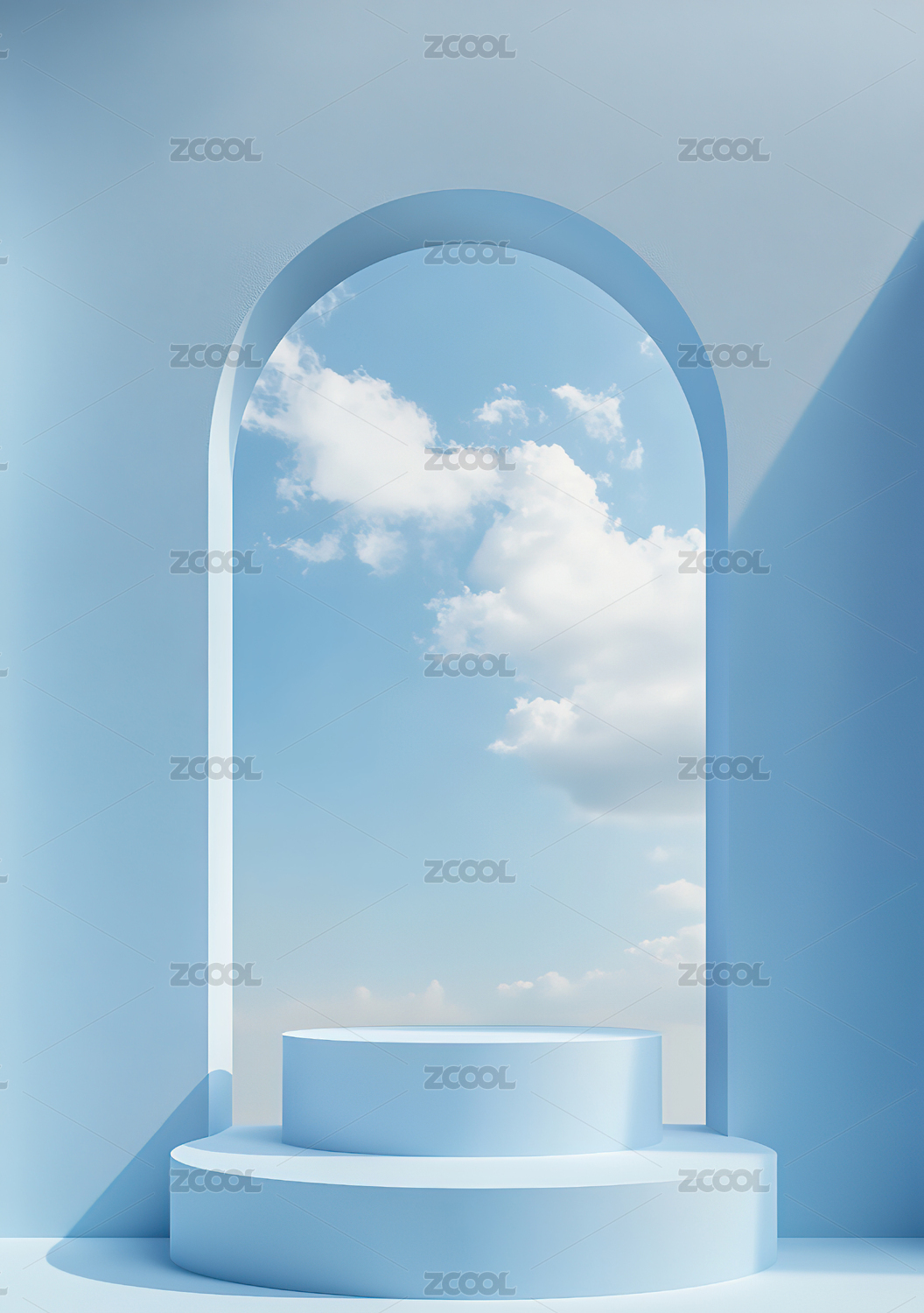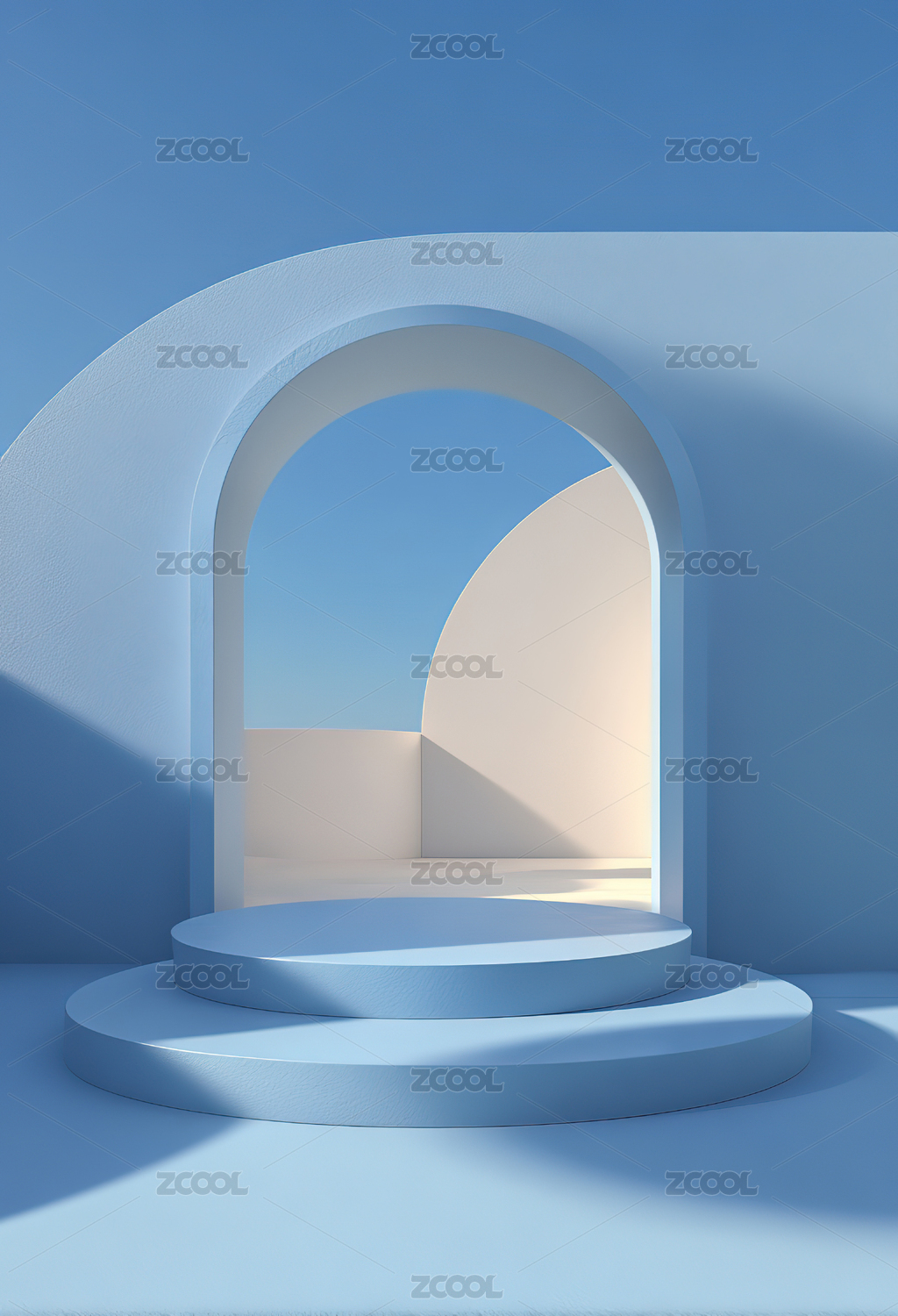 蓝色3d几何形状空间商品展台