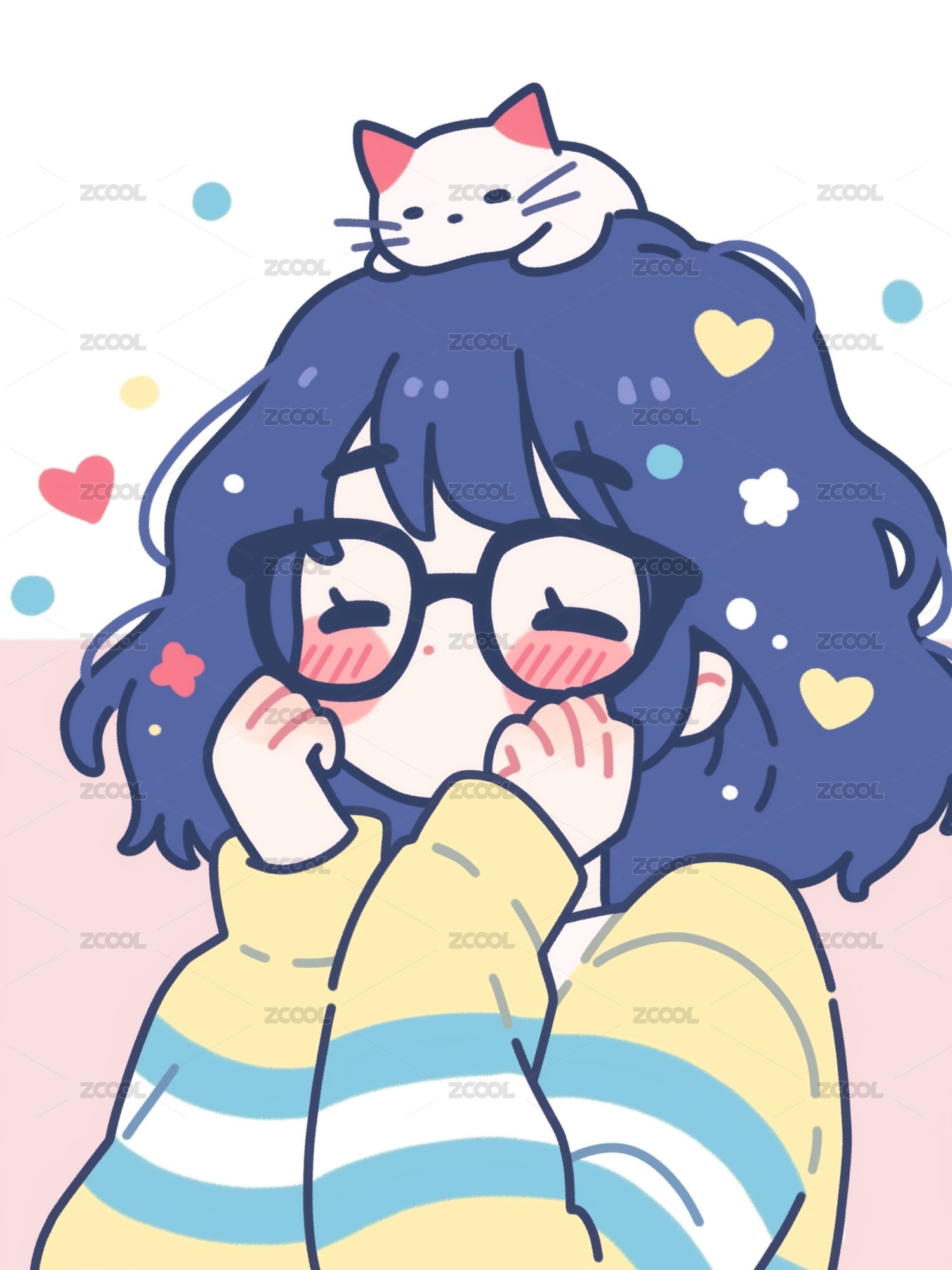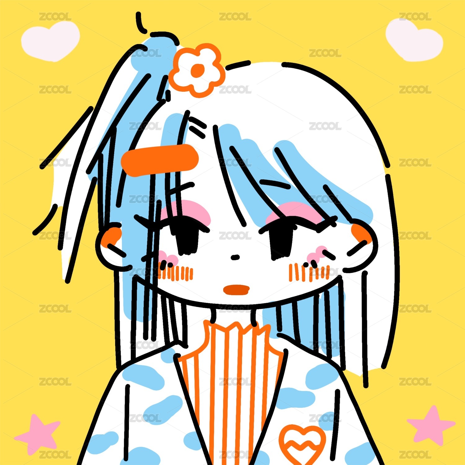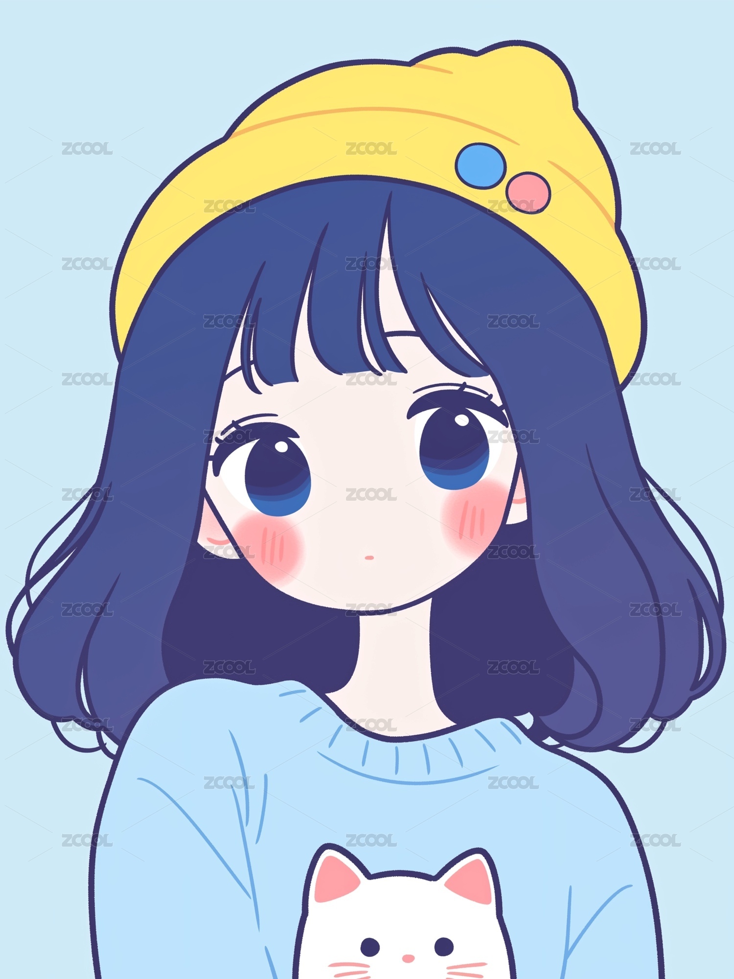 可爱白底女生q版头像插画