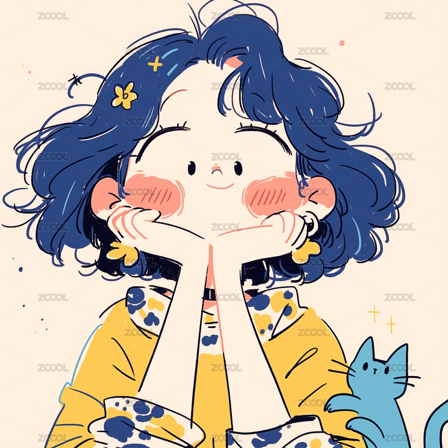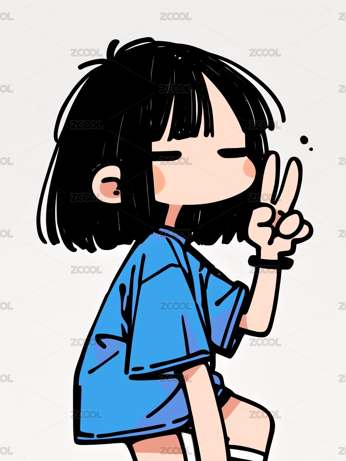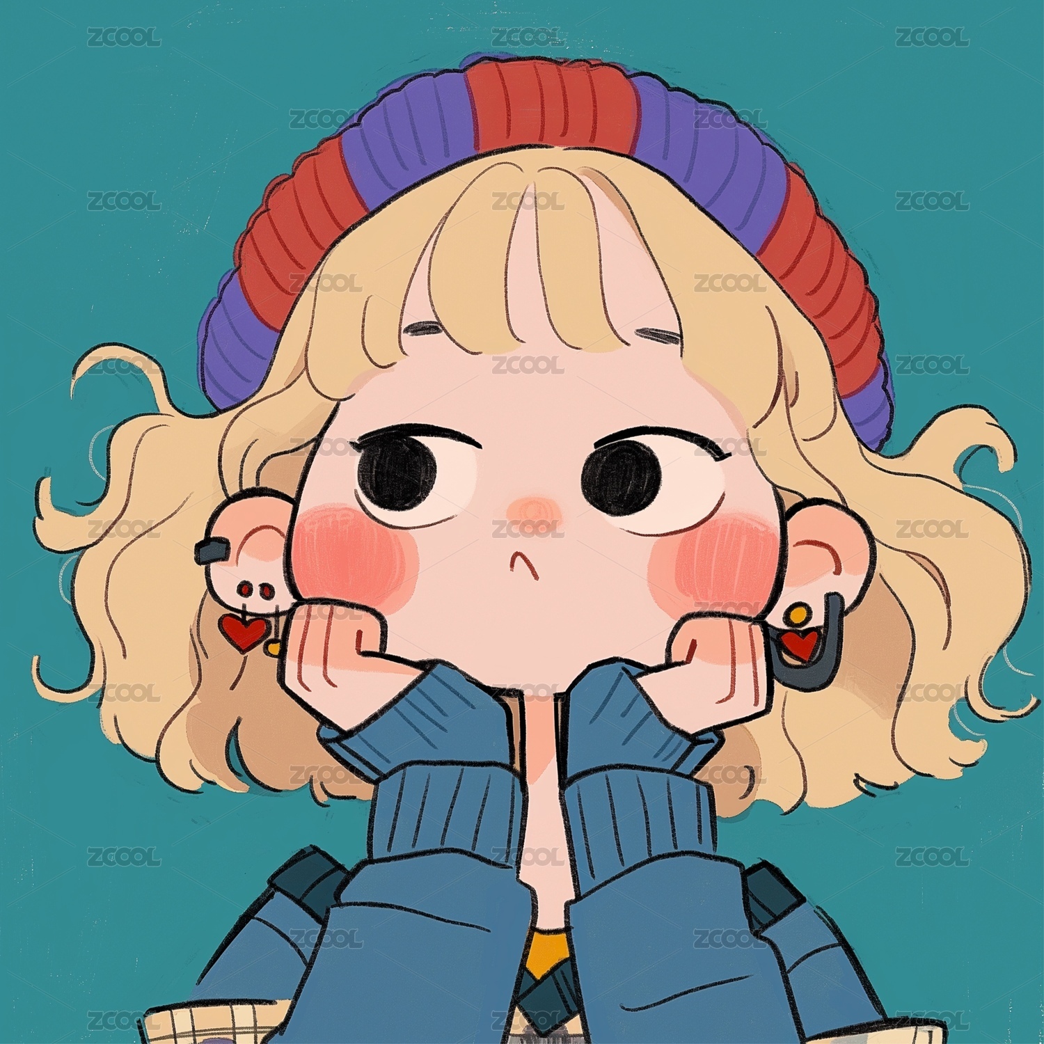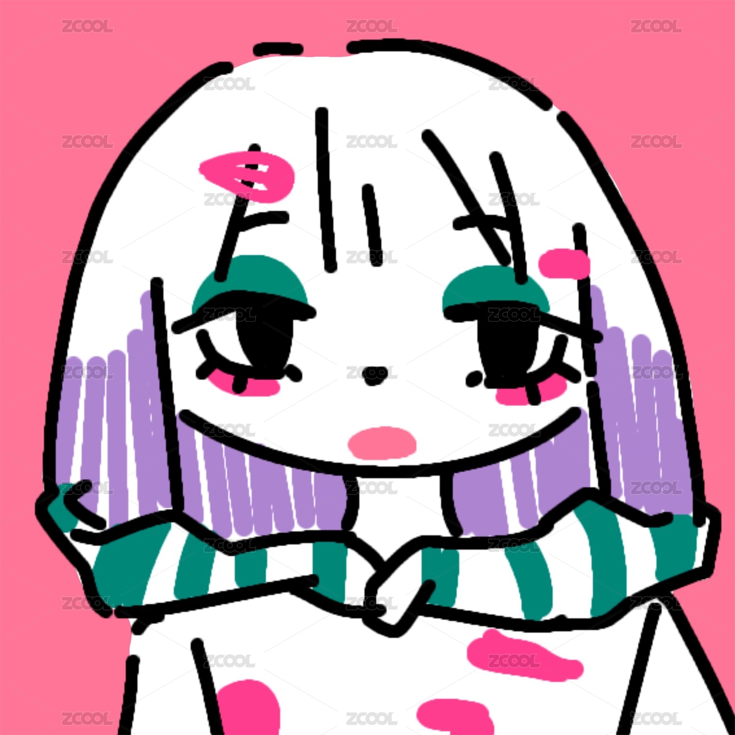 可爱白底女生q版头像插画