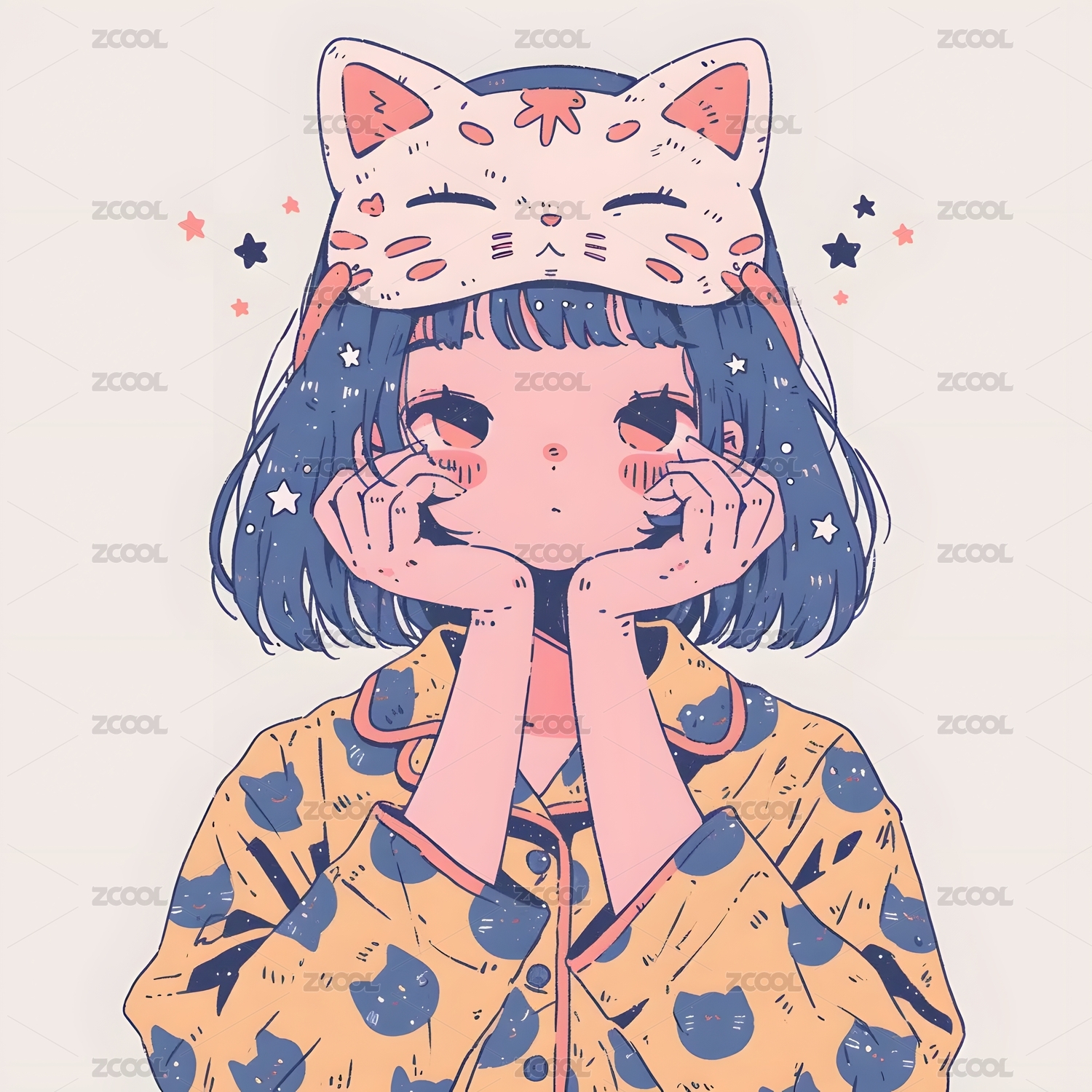 可爱女孩睡衣正脸插画