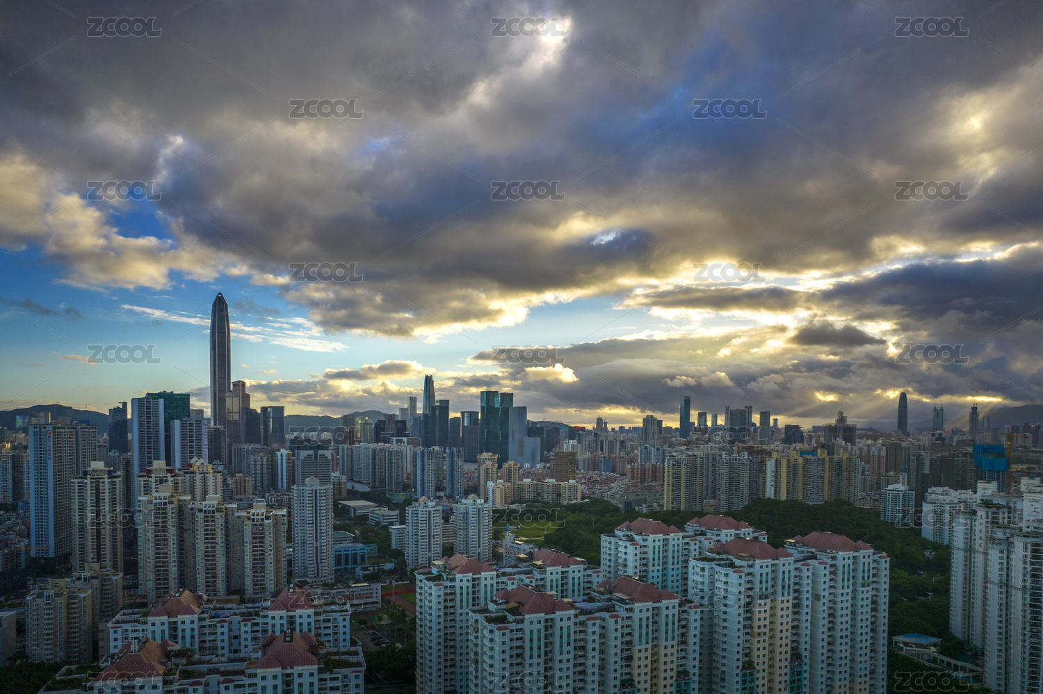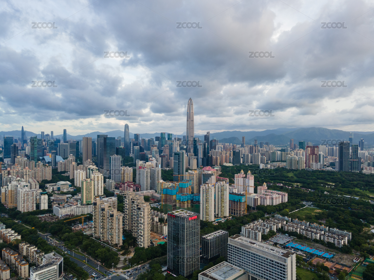 中国广东省深圳城市天际线建筑群高楼大厦景观